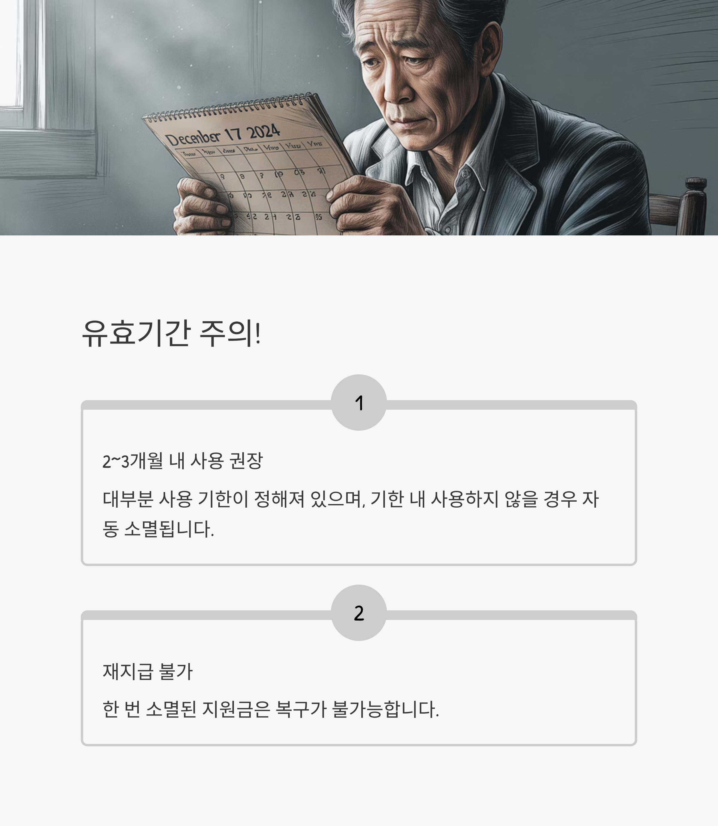 민생지원금은 대부분 사용 기한이 정해져 있으며, 기한 내 사용하지 않을 경우 자동 소멸됩니다.