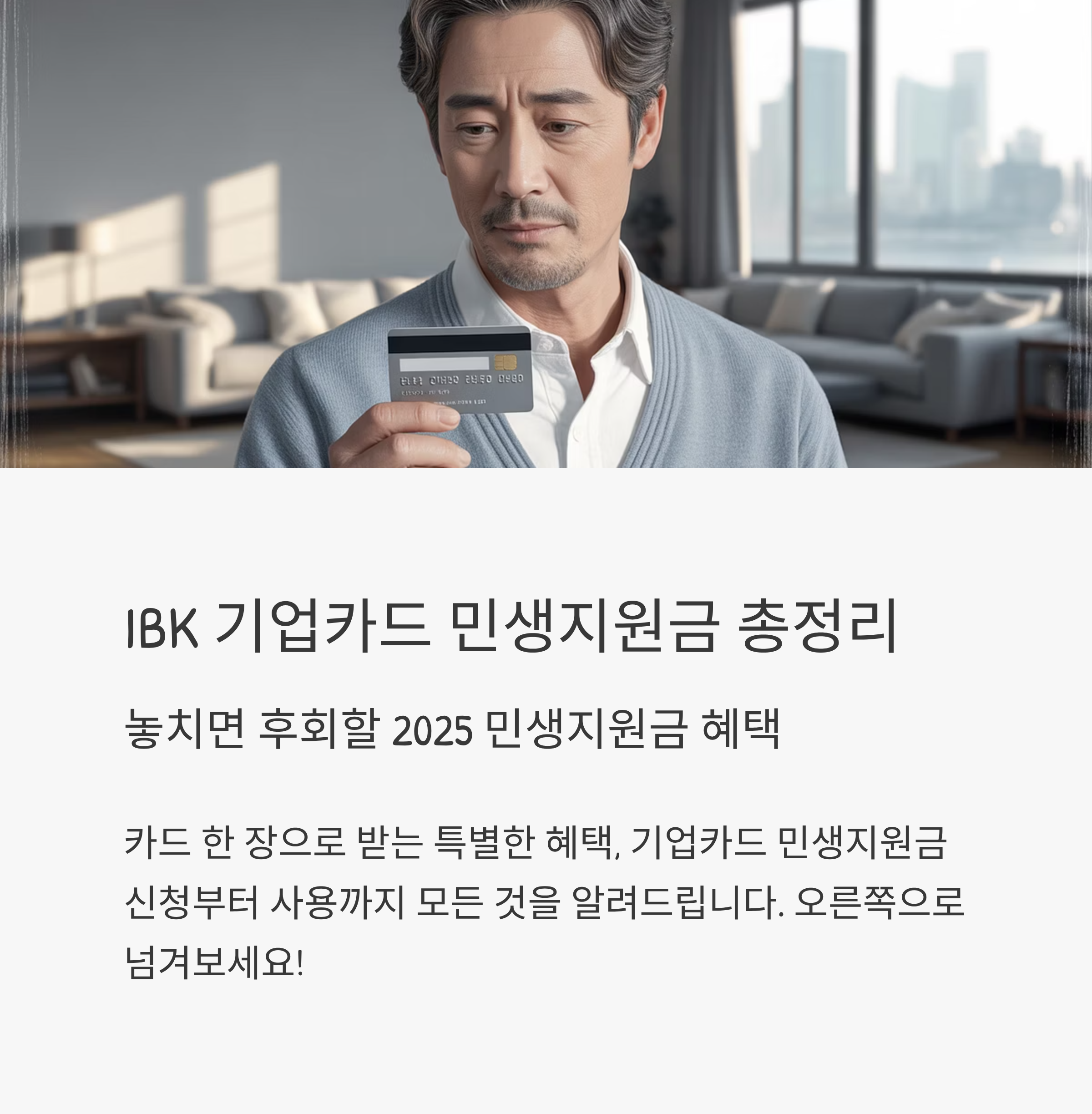 최근 정부와 지자체가 함께 민생 회복을 위한 소비지원 정책을 적극 시행하면서, IBK 기업카드를 통한 민생지원금 수령과 소비쿠폰 사용에 대한 관심이 뜨겁습니다. 기업카드 민생지원금 신청 절차, 사용처, 유효기간, 유의사항까지 완벽하게 정리해드리겠습니다. 특히 소상공인과 자영업자를 중심으로 실질적인 혜택을 받을 수 있는 최고에 기회 놓치지 마세요.
