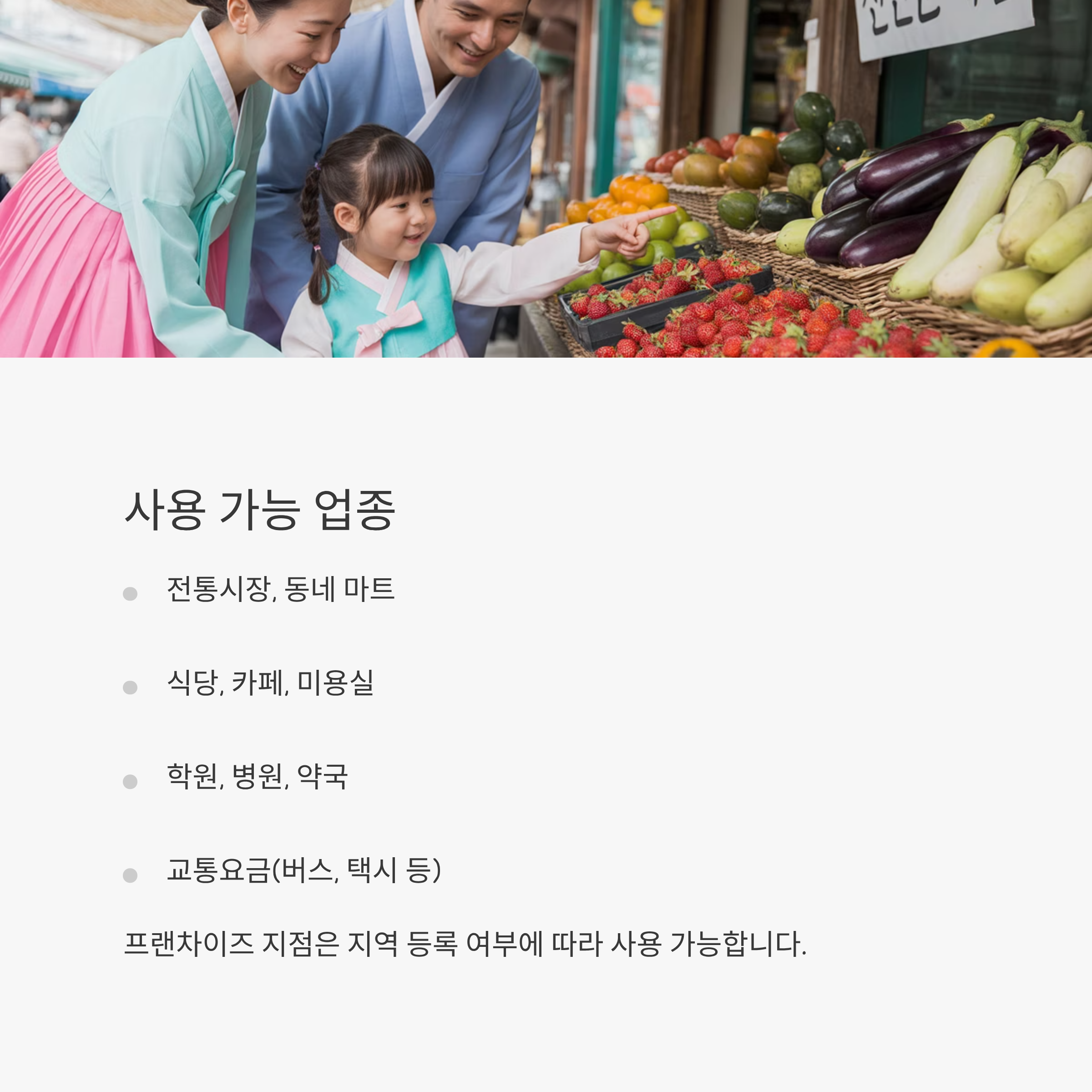 ※ 프랜차이즈 지점은 지역 등록 여부에 따라 사용 가능