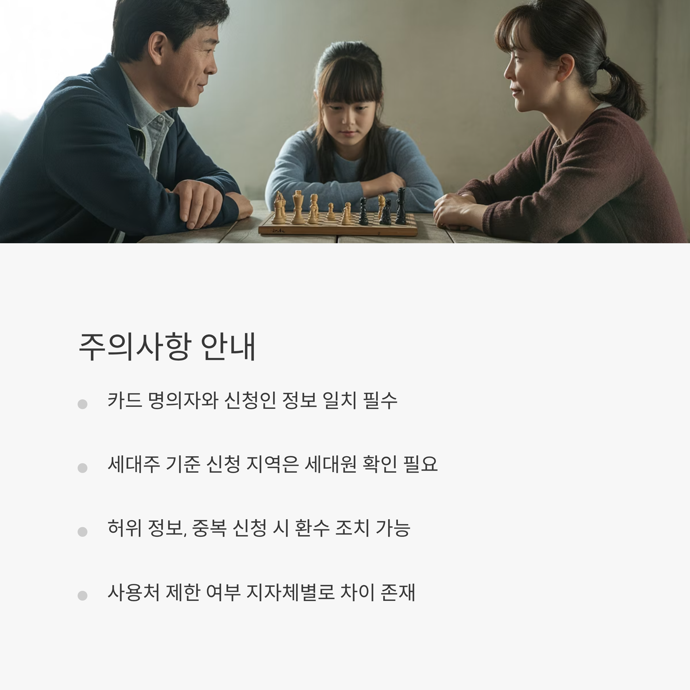 카드로 지원금을 수령하고 사용하기 전, 꼭 아래 사항을 확인하세요.