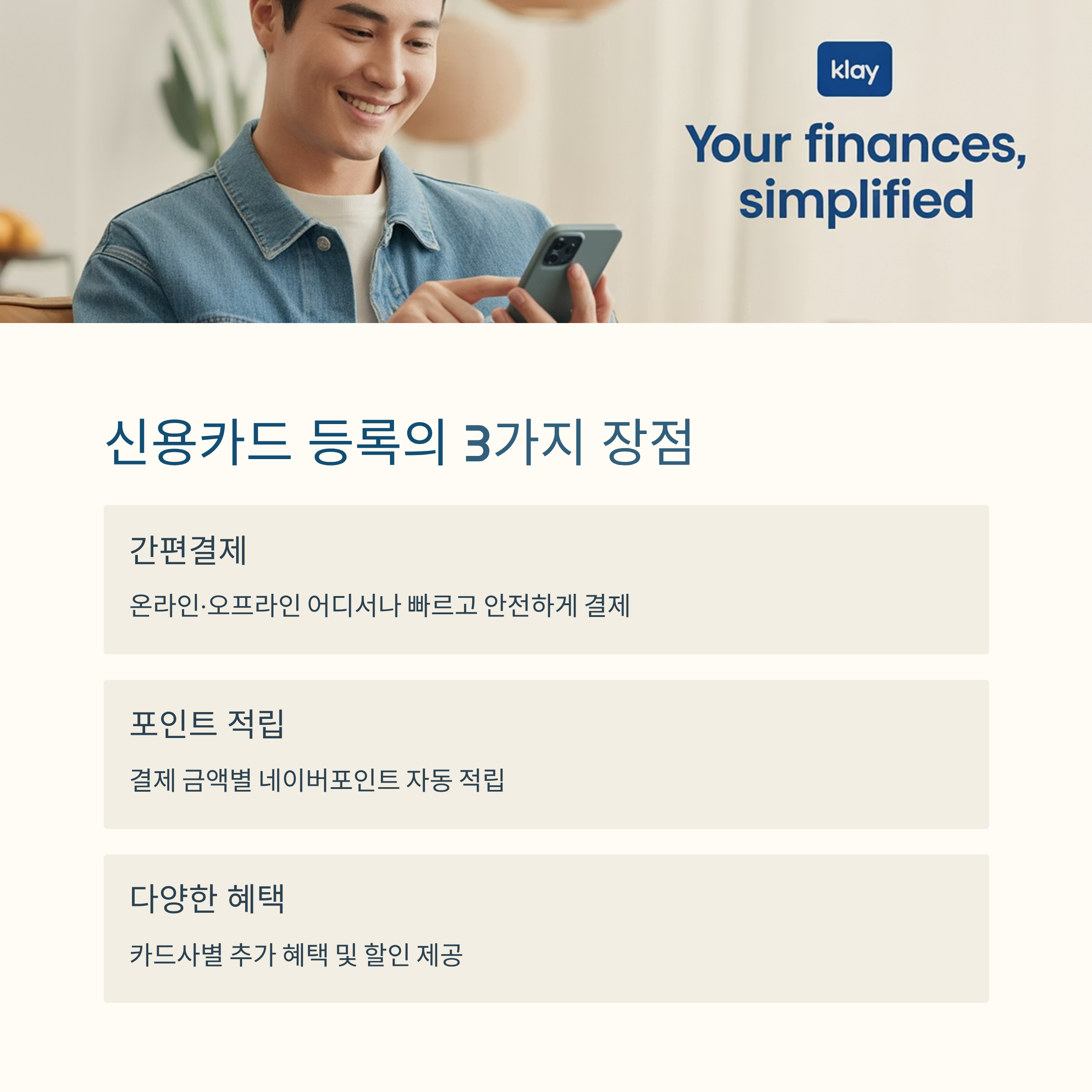 네이버페이에 신용카드를 등록하면 다음과 같은 혜택을 누릴 수 있습니다.