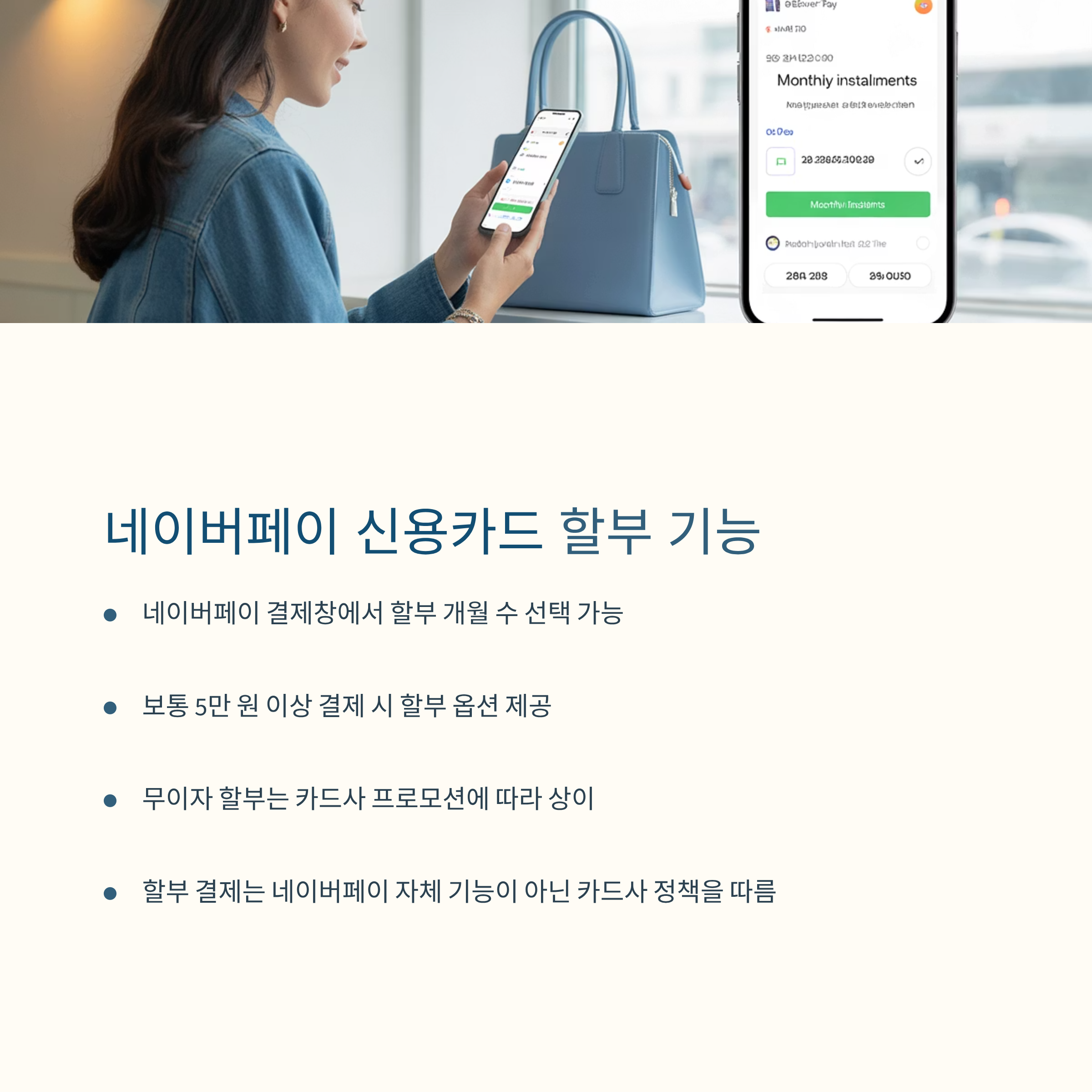 할부 결제는 네이버페이 자체 기능이 아닌 카드사 정책을 따릅니다.