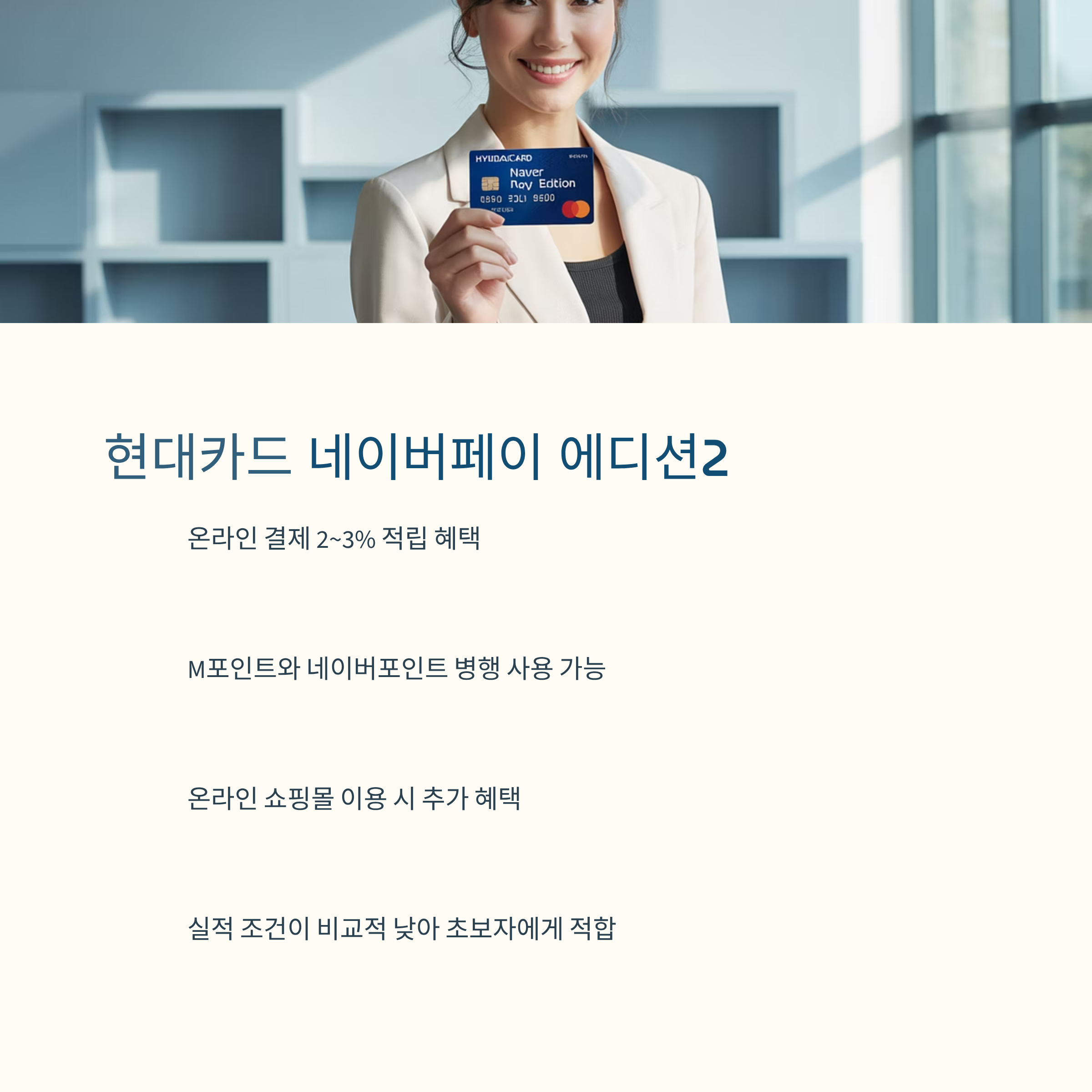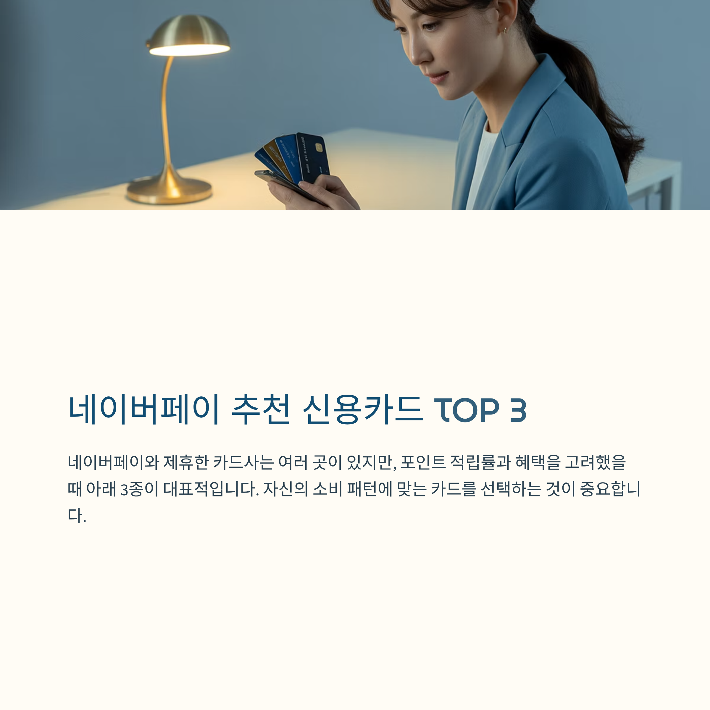 네이버페이와 제휴한 카드사는 여러 곳이 있지만, 포인트 적립률과 혜택을 고려했을 때 아래 3종이 대표적입니다.