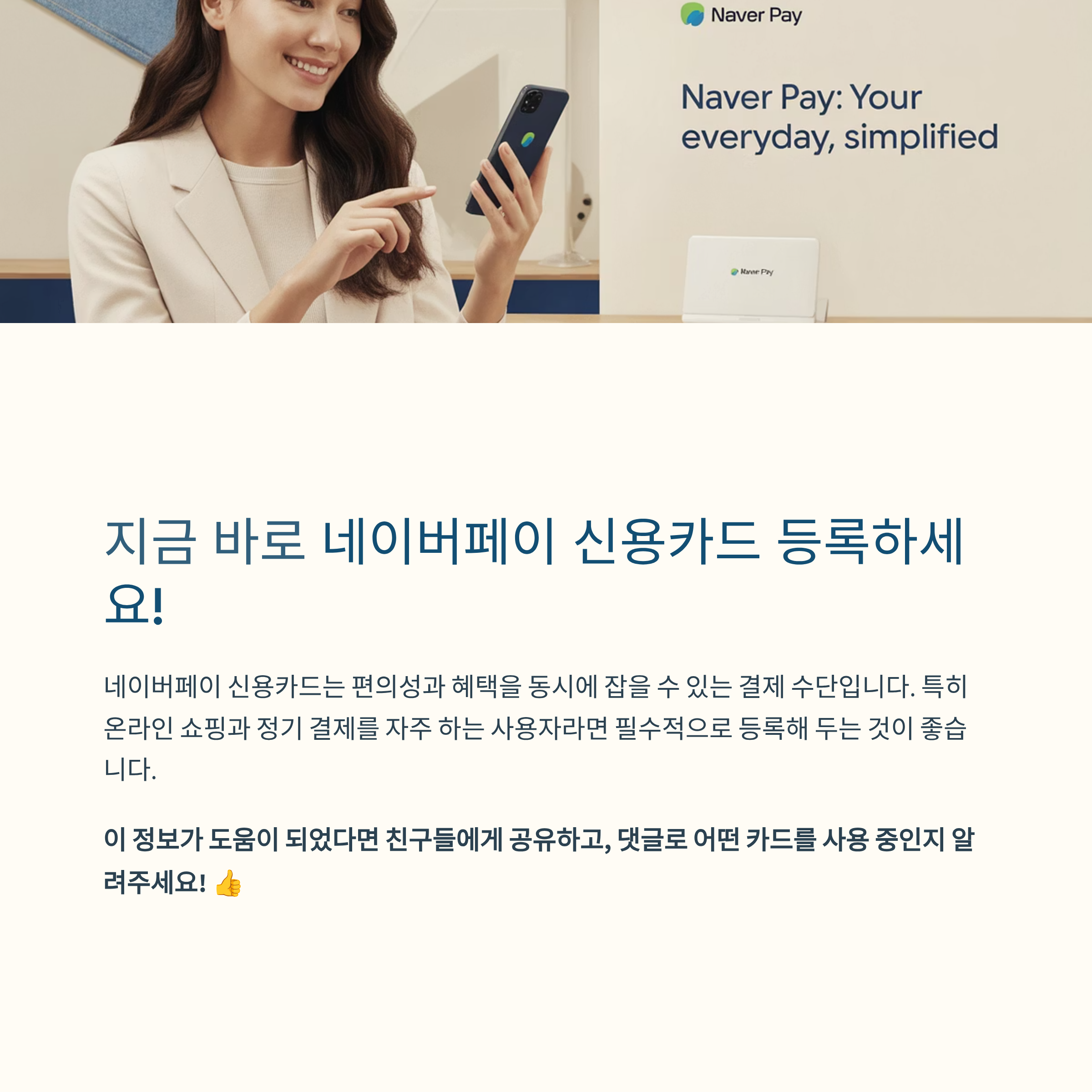 네이버페이 신용카드는 편의성과 혜택을 동시에 잡을 수 있는 결제 수단입니다.
