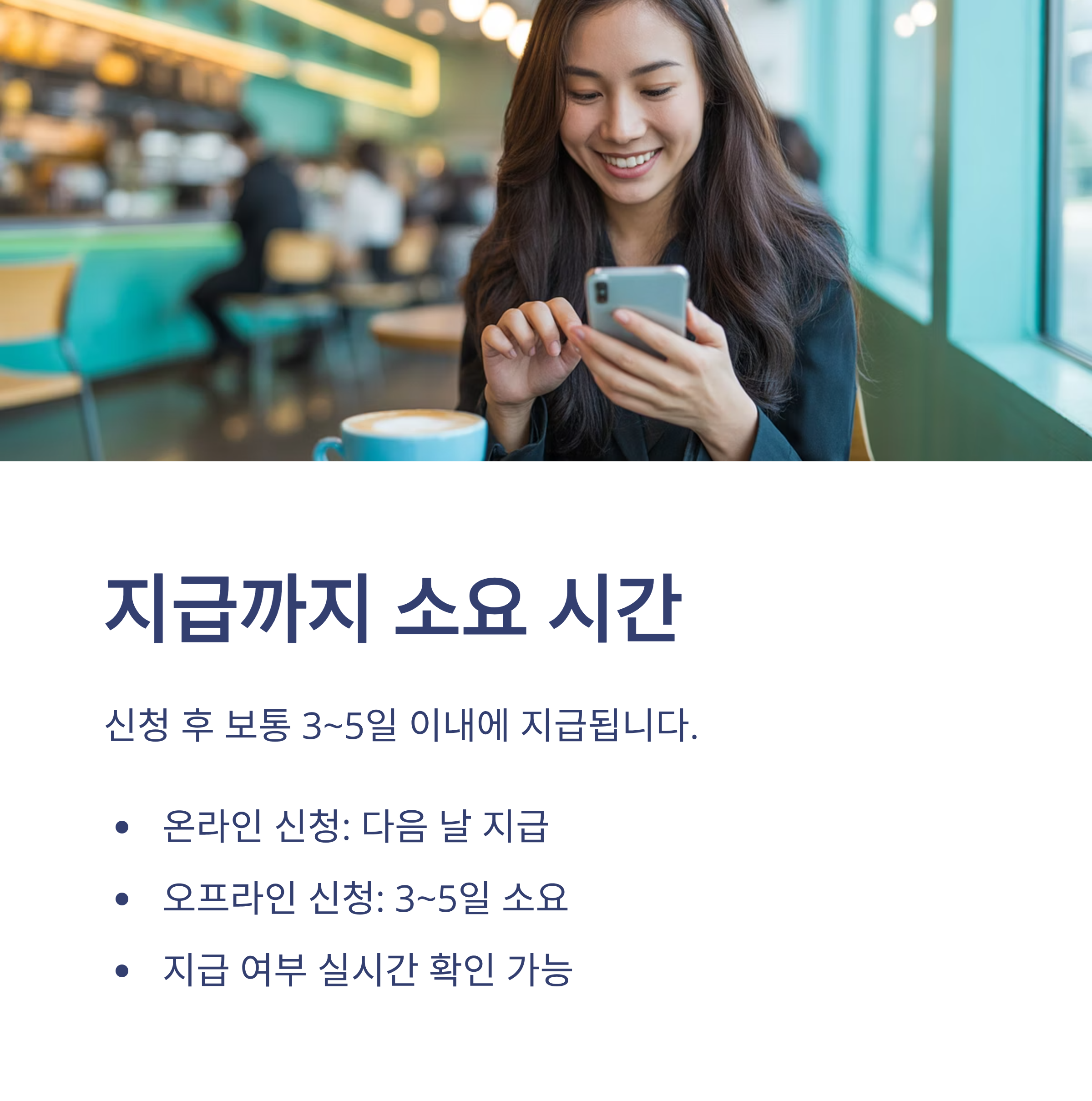A1. 보통 신청 후 3~5일 이내에 지급됩니다.