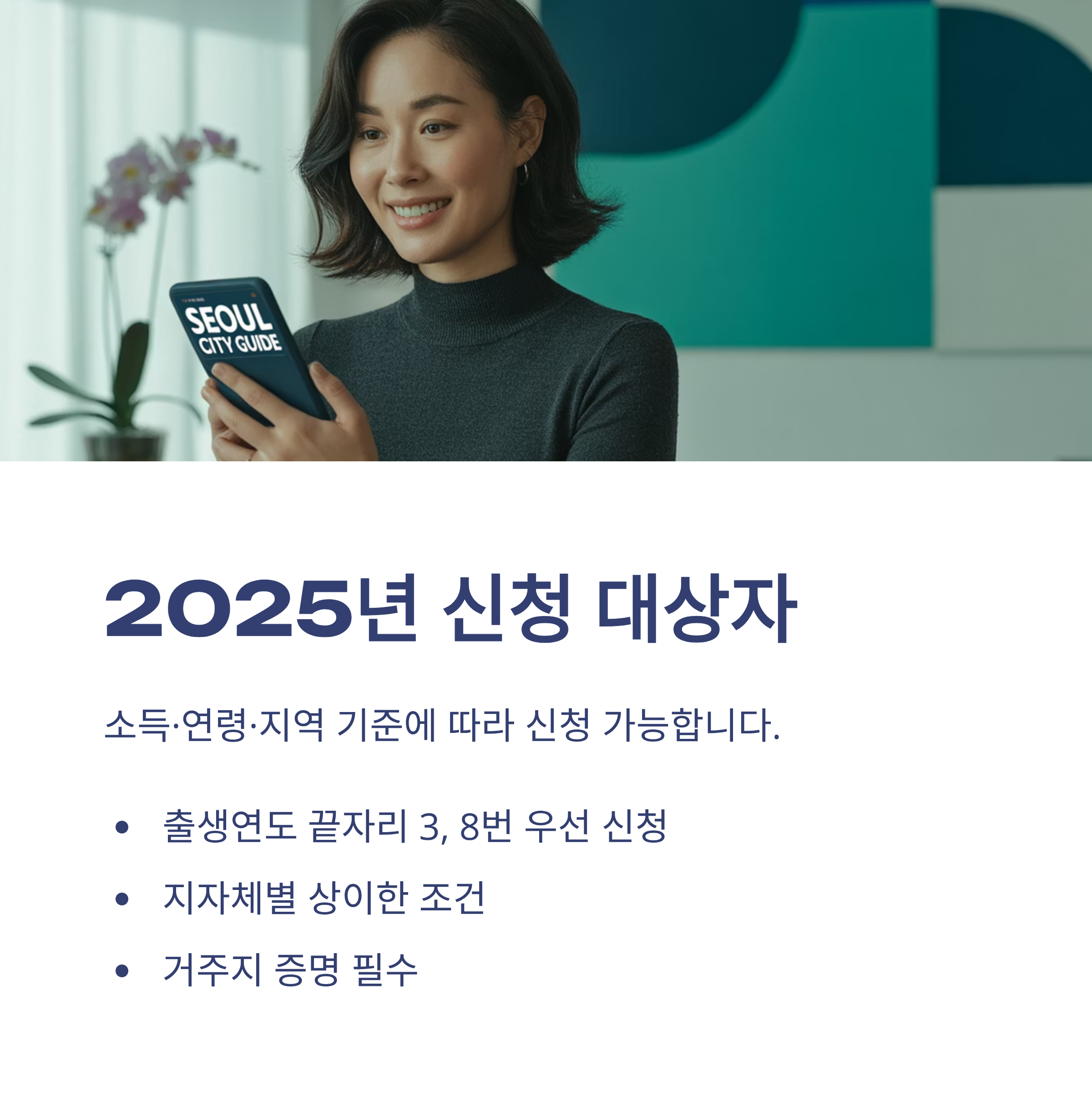 지원 대상은 소득·연령·지역 기준에 따라 달라지며, 지자체별로 조건이 상이합니다.