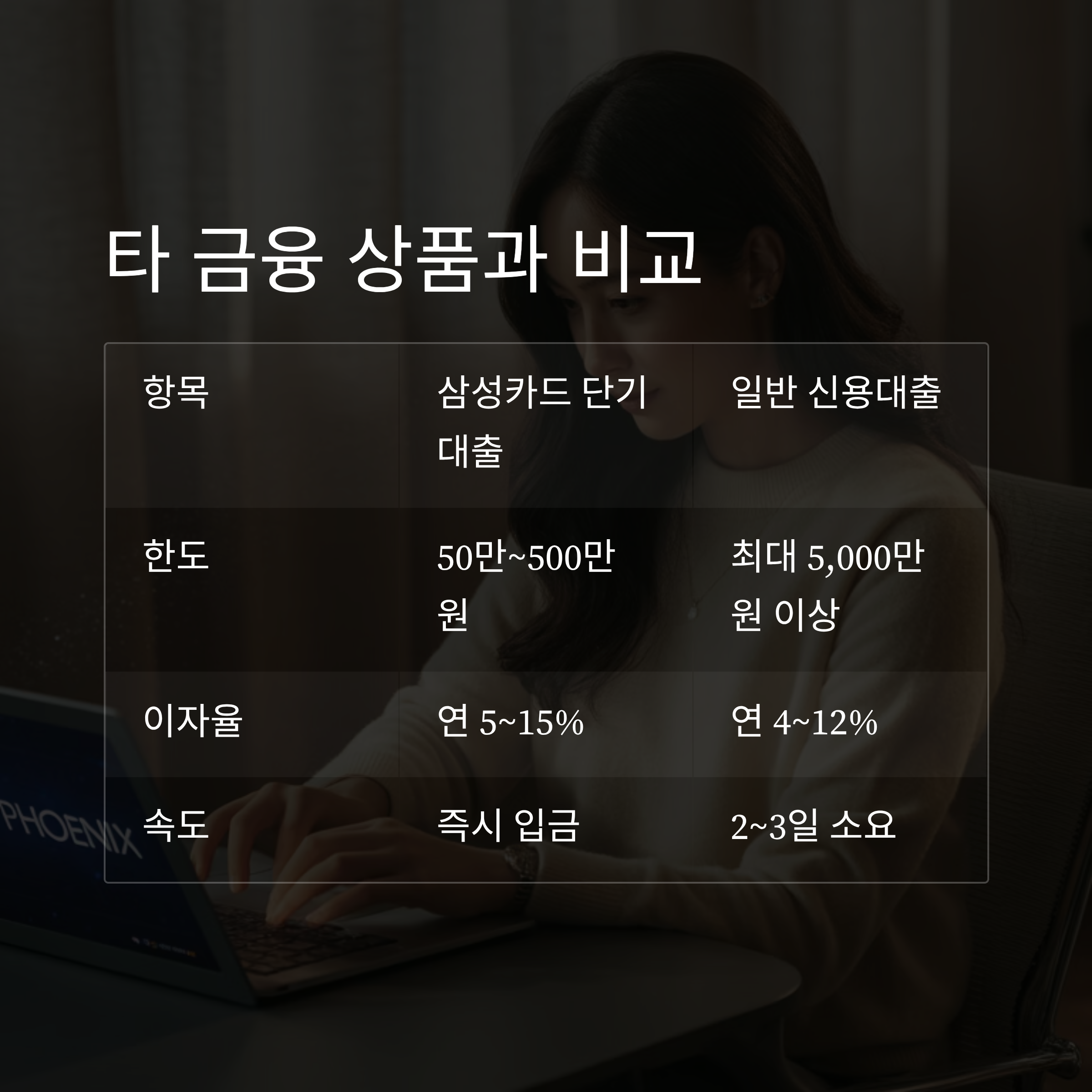 삼성카드 단기카드대출은 삼성카드가 제공하는 비상금 성격의 대출 상품입니다.