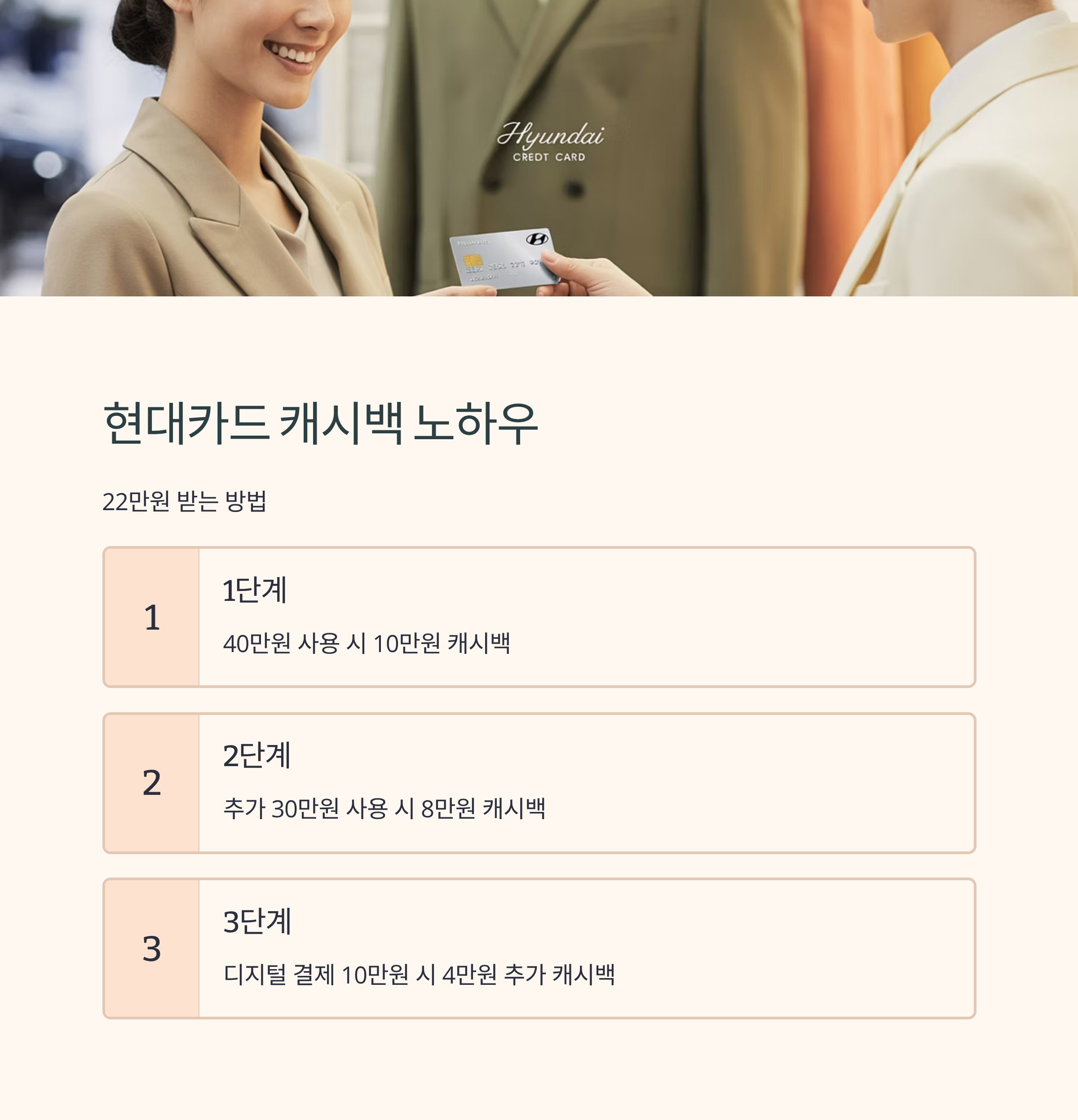 | 현대카드 | 22 | 30,000 | 40만원 사용 시 혜택 |