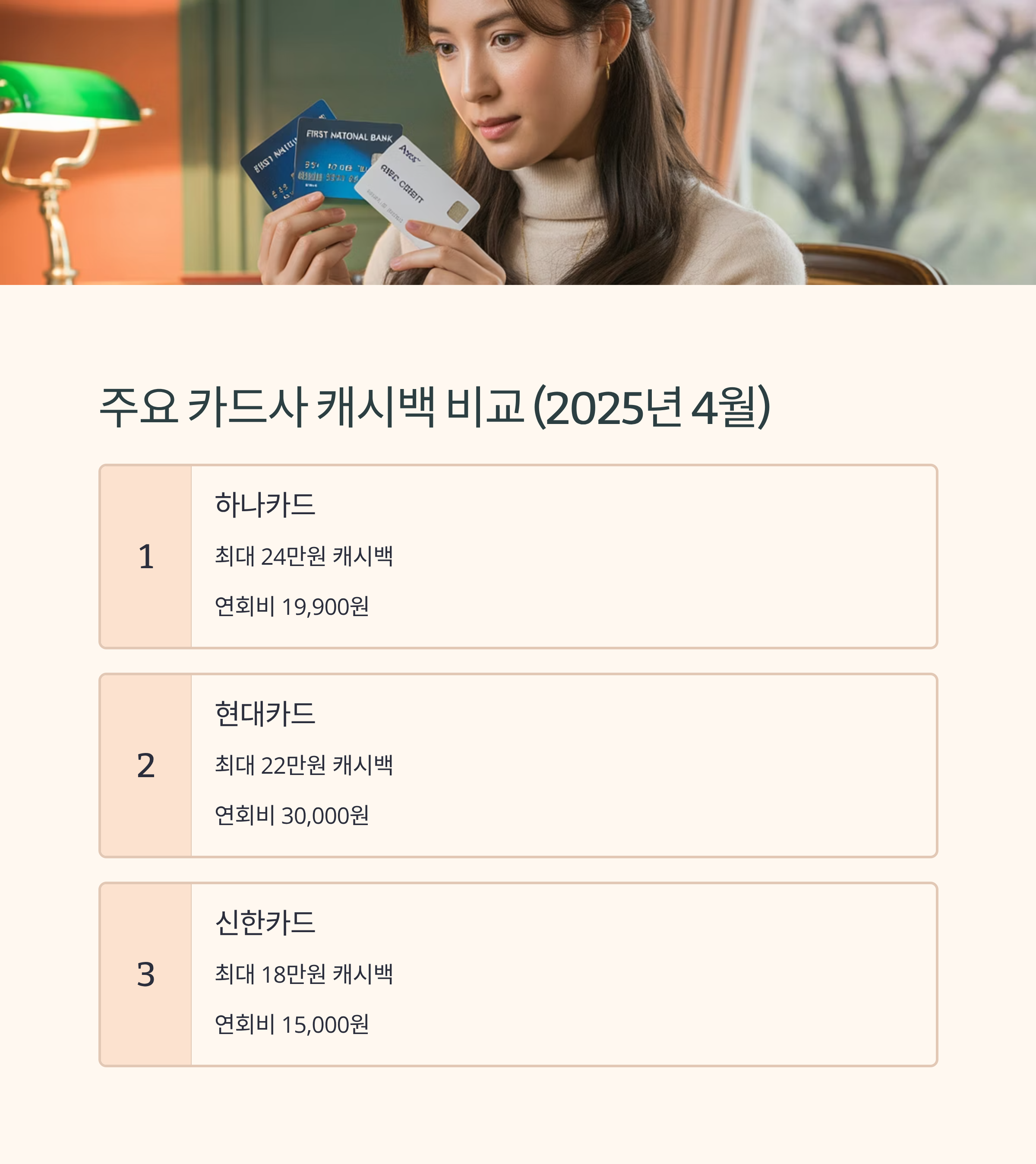 3. 카드사별 캐시백 이벤트 비교 (2025년 4월 기준)