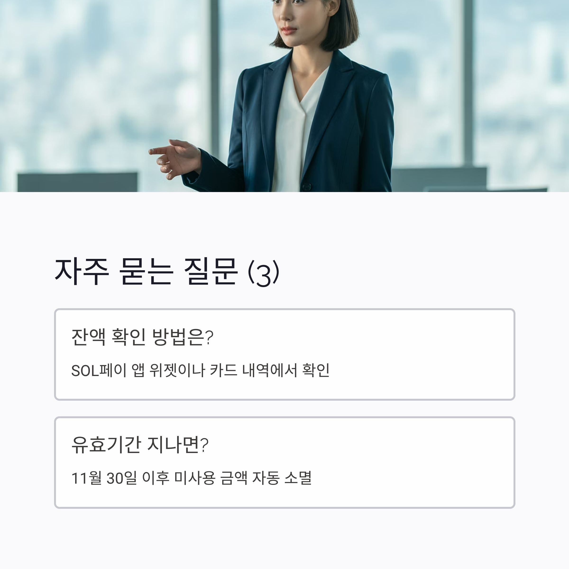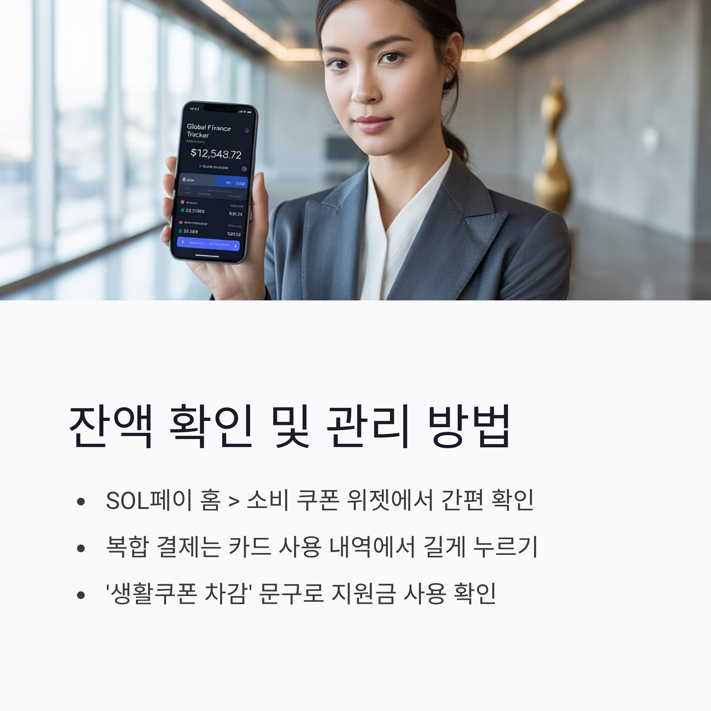 잔액은 SOL페이 홈 > 소비 쿠폰 위젯에서 간편 확인 가능하며,