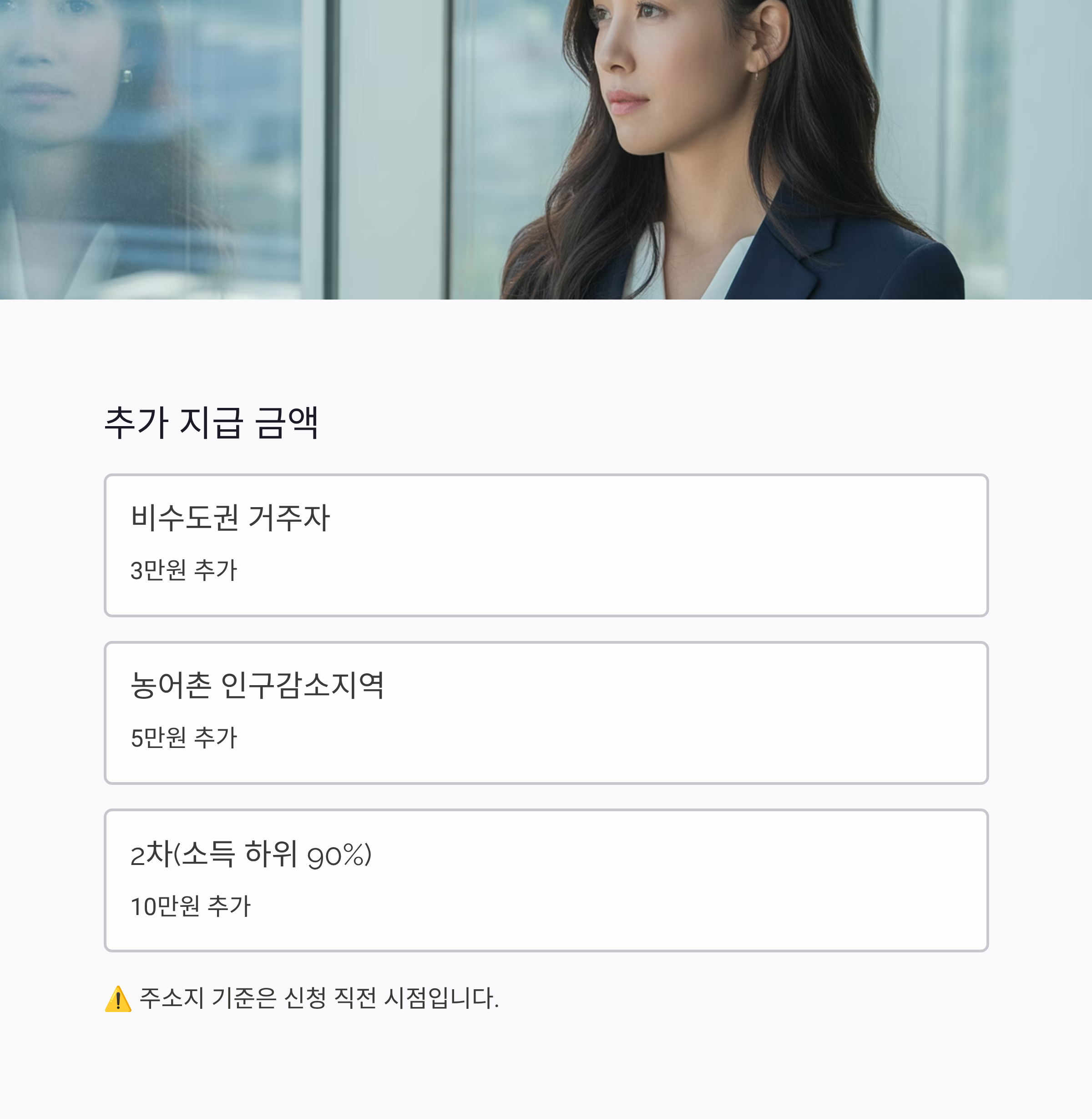 ✅ 농어촌 인구감소지역 거주자: 5만 원 추가