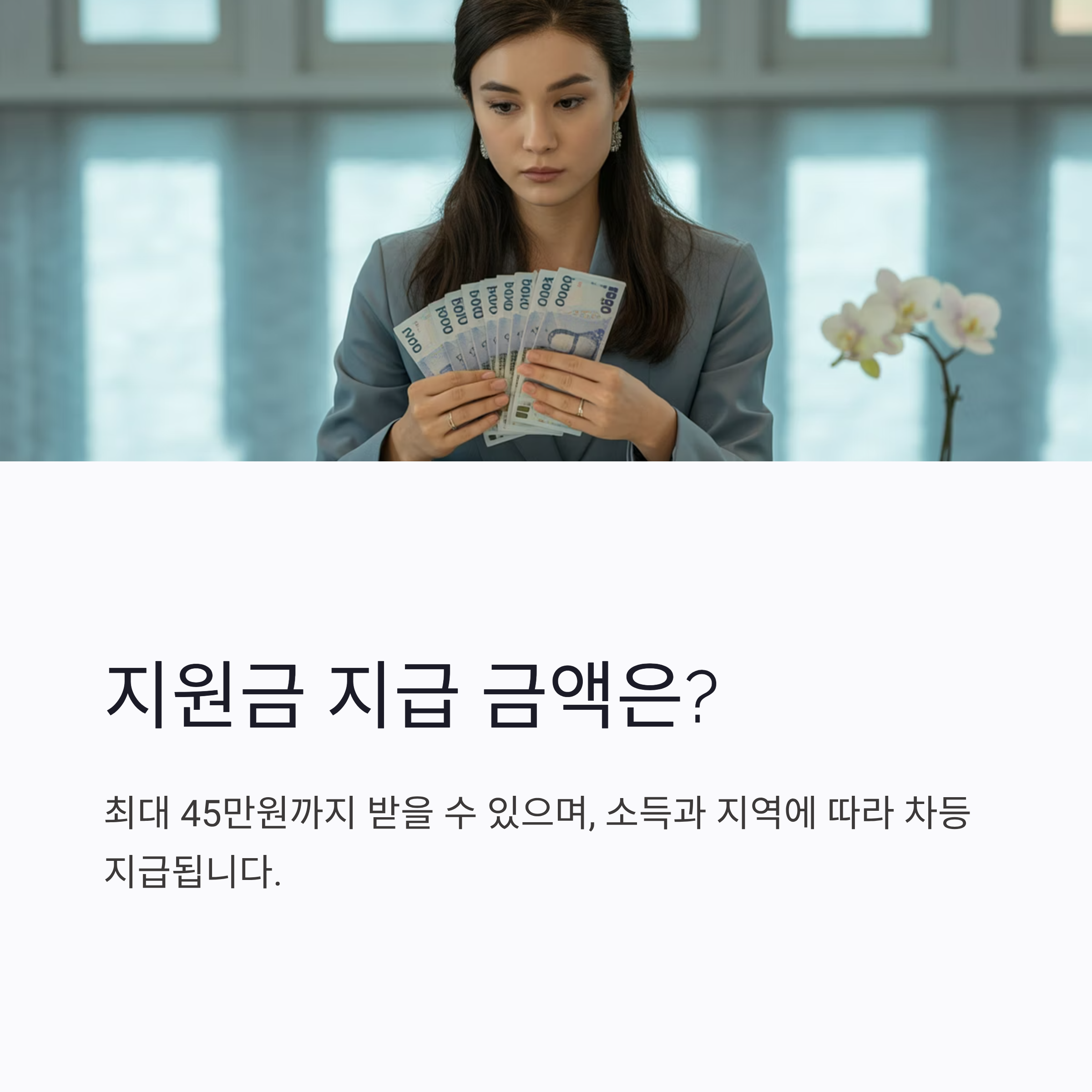 총 최대 45만 원까지 받을 수 있으며, 주소지 기준이 신청 직전 시점이라는 점을 꼭 확인하세요.