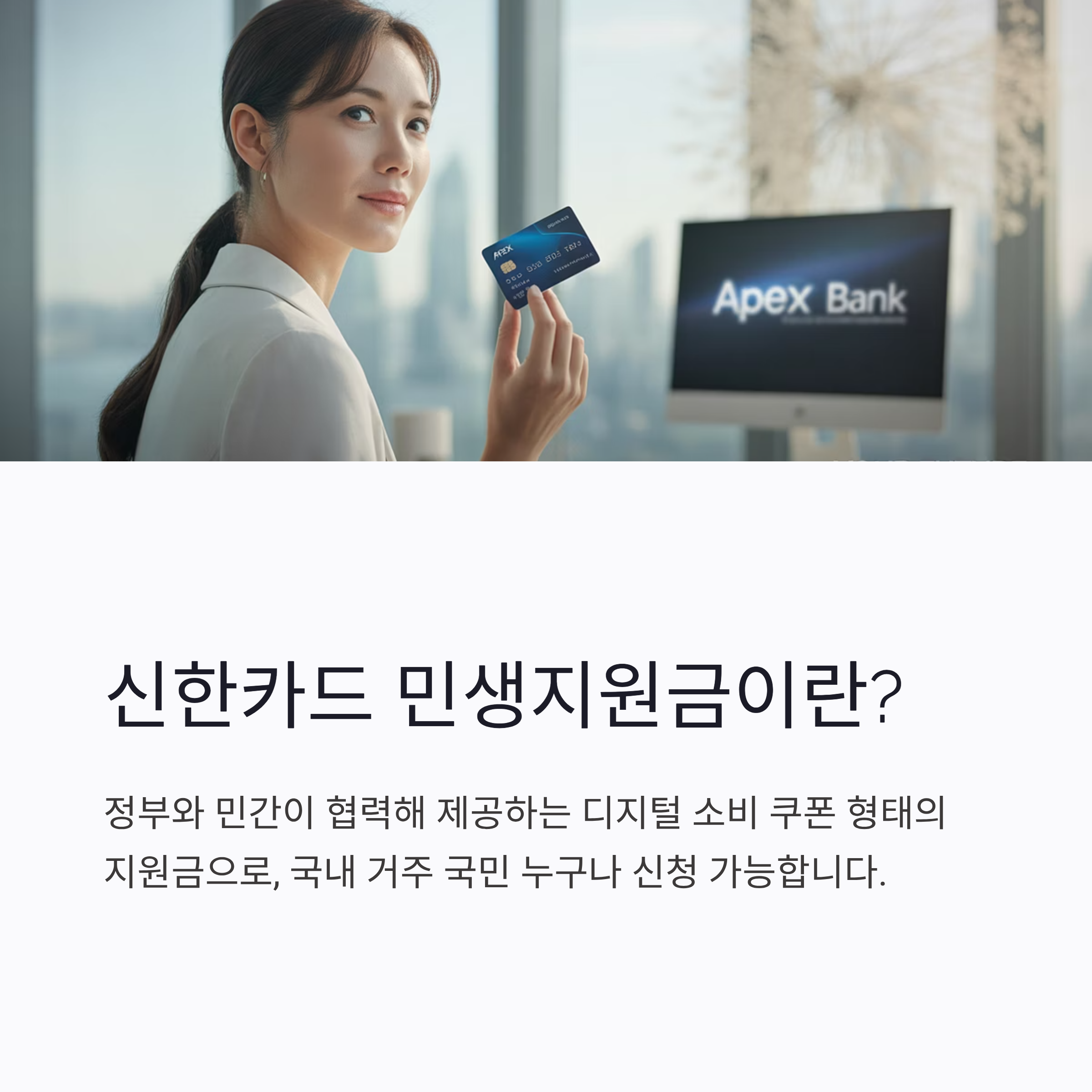 신한카드 민생지원금은 정부와 민간이 협력해 제공하는 디지털 소비 쿠폰 형태의 지원금입니다.
