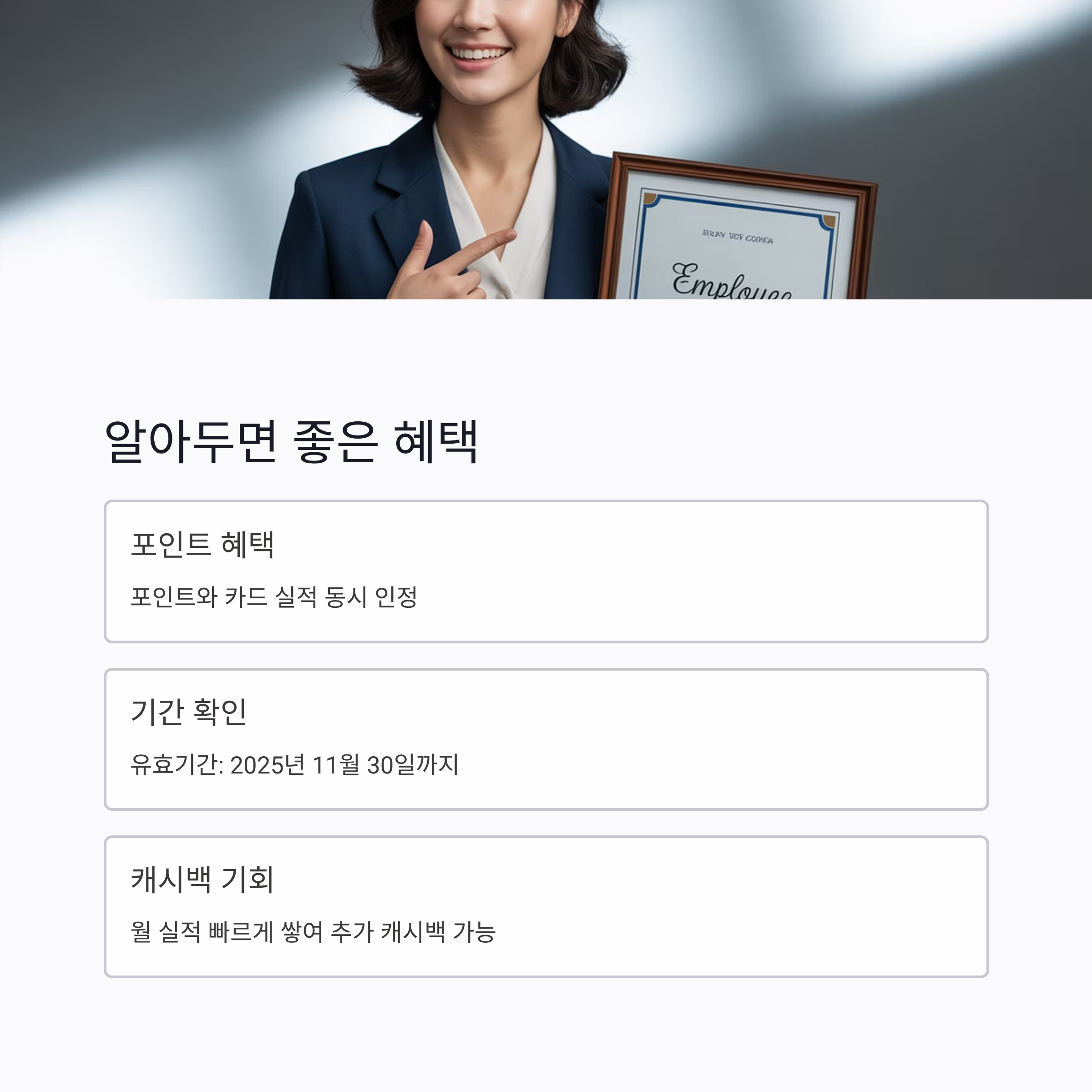 팁: 월 실적이 빠르게 쌓여 추가 캐시백 등 스텝업 혜택을 노릴 수 있습니다.
