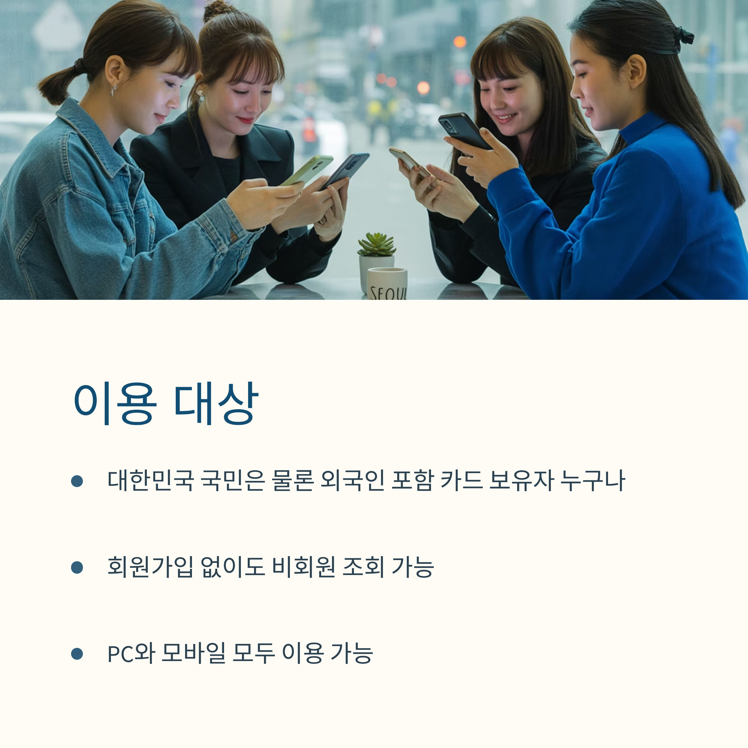 ✅ 대한민국 국민은 물론, 외국인 포함 신용카드 보유자 누구나 이용 가능