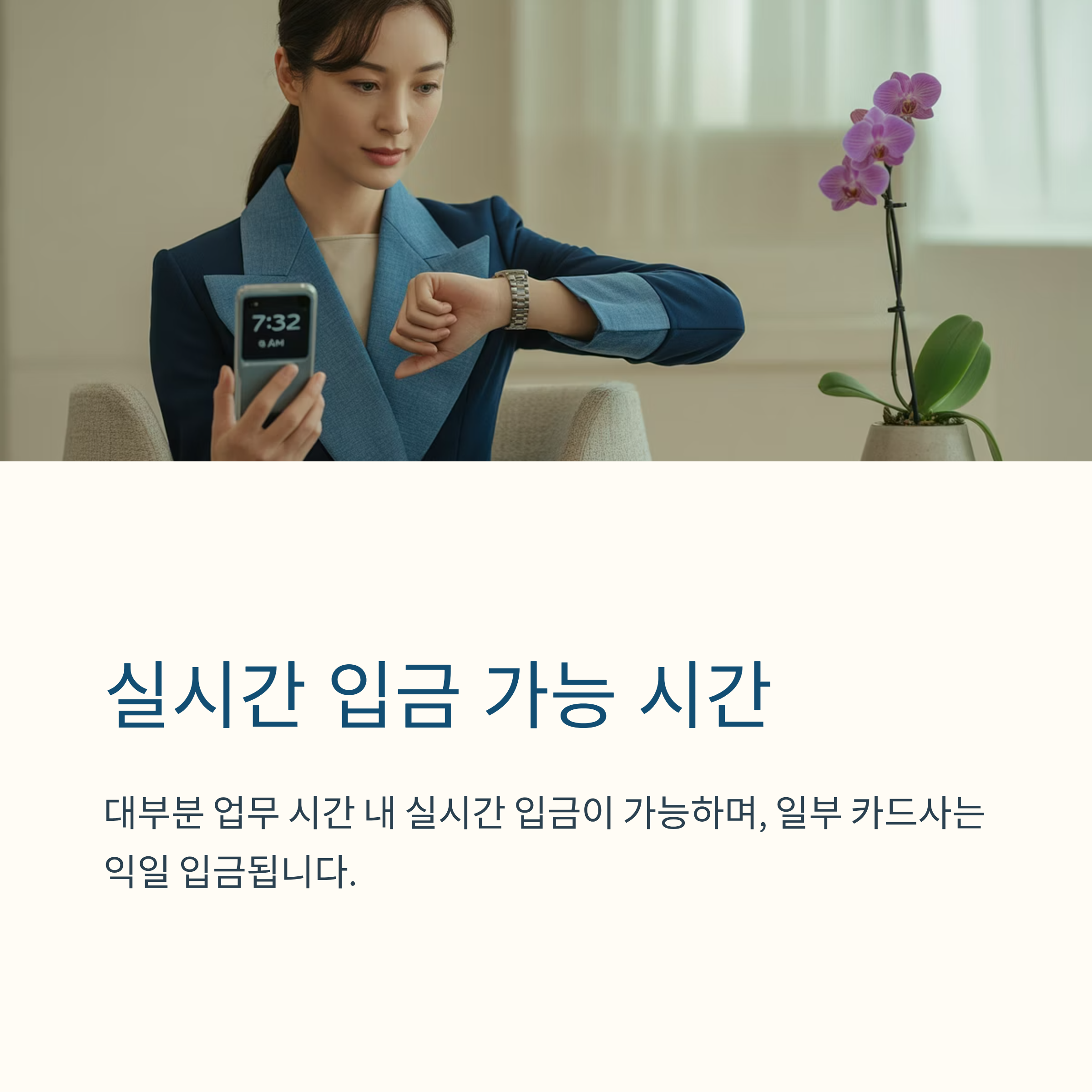 정확한 입금 시간은 해당 카드사 공지를 참고해주세요.