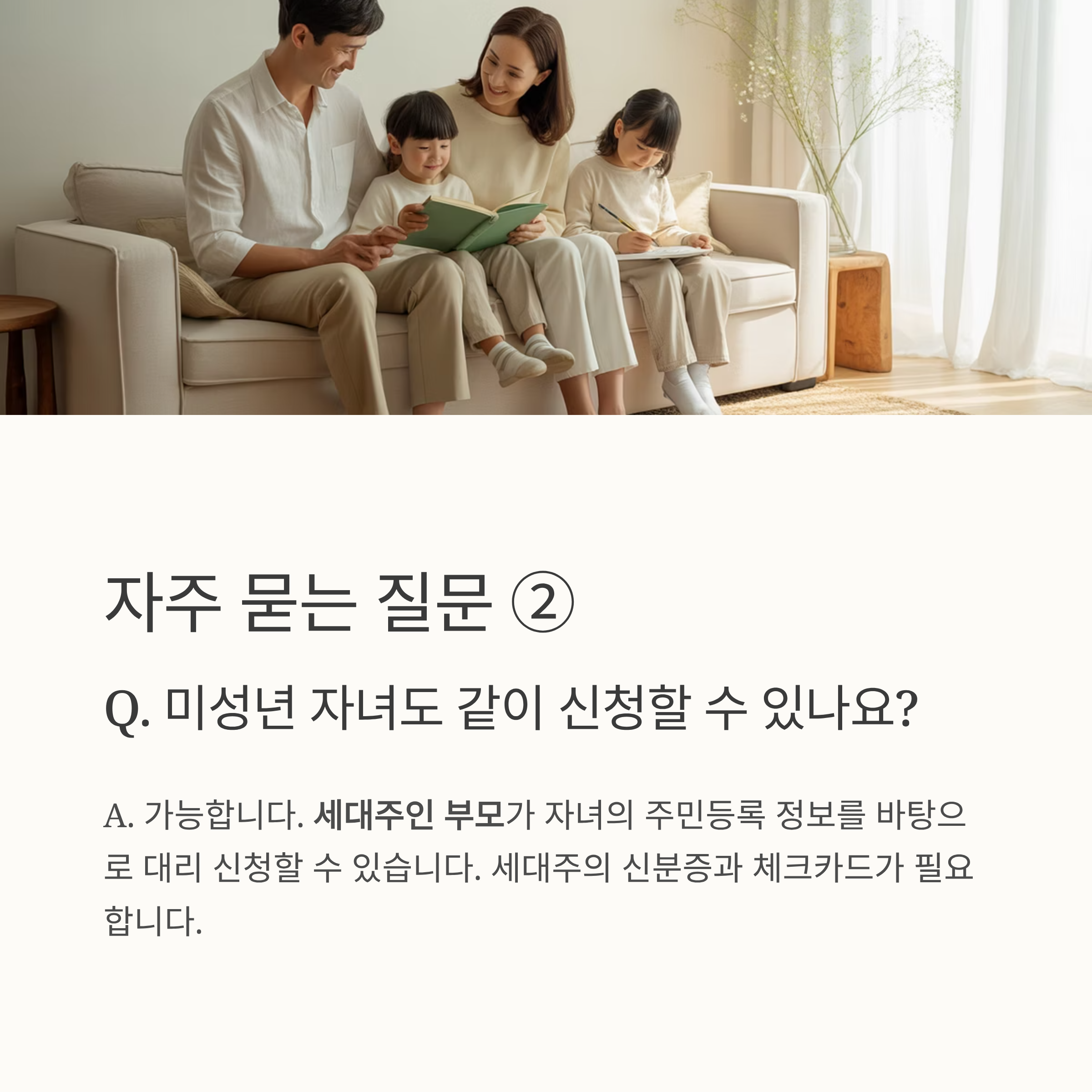 Q2. 미성년 자녀도 같이 신청할 수 있나요?
