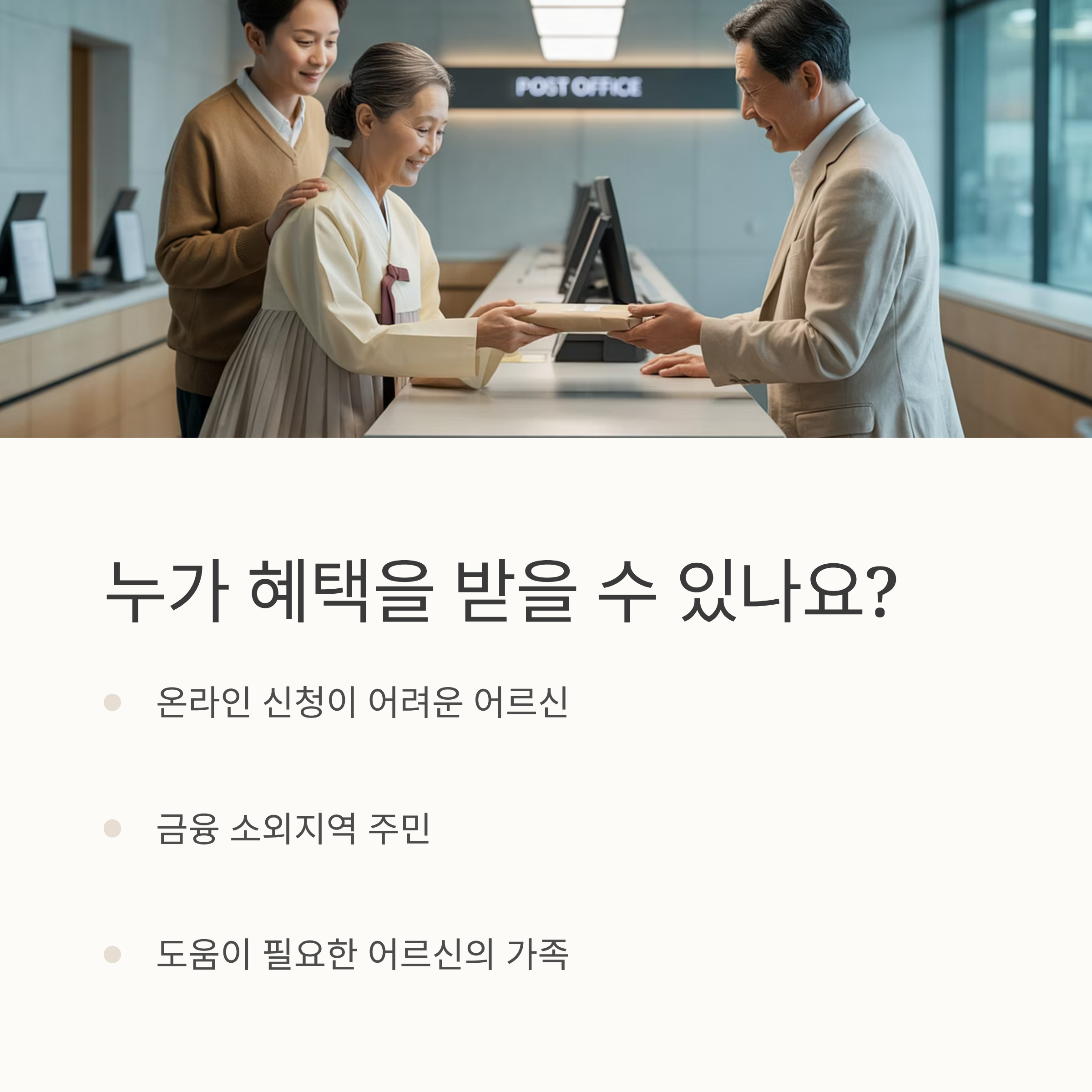✅ 신청 장소: 전국 우체국 창구, 우체국 스마트뱅킹 앱