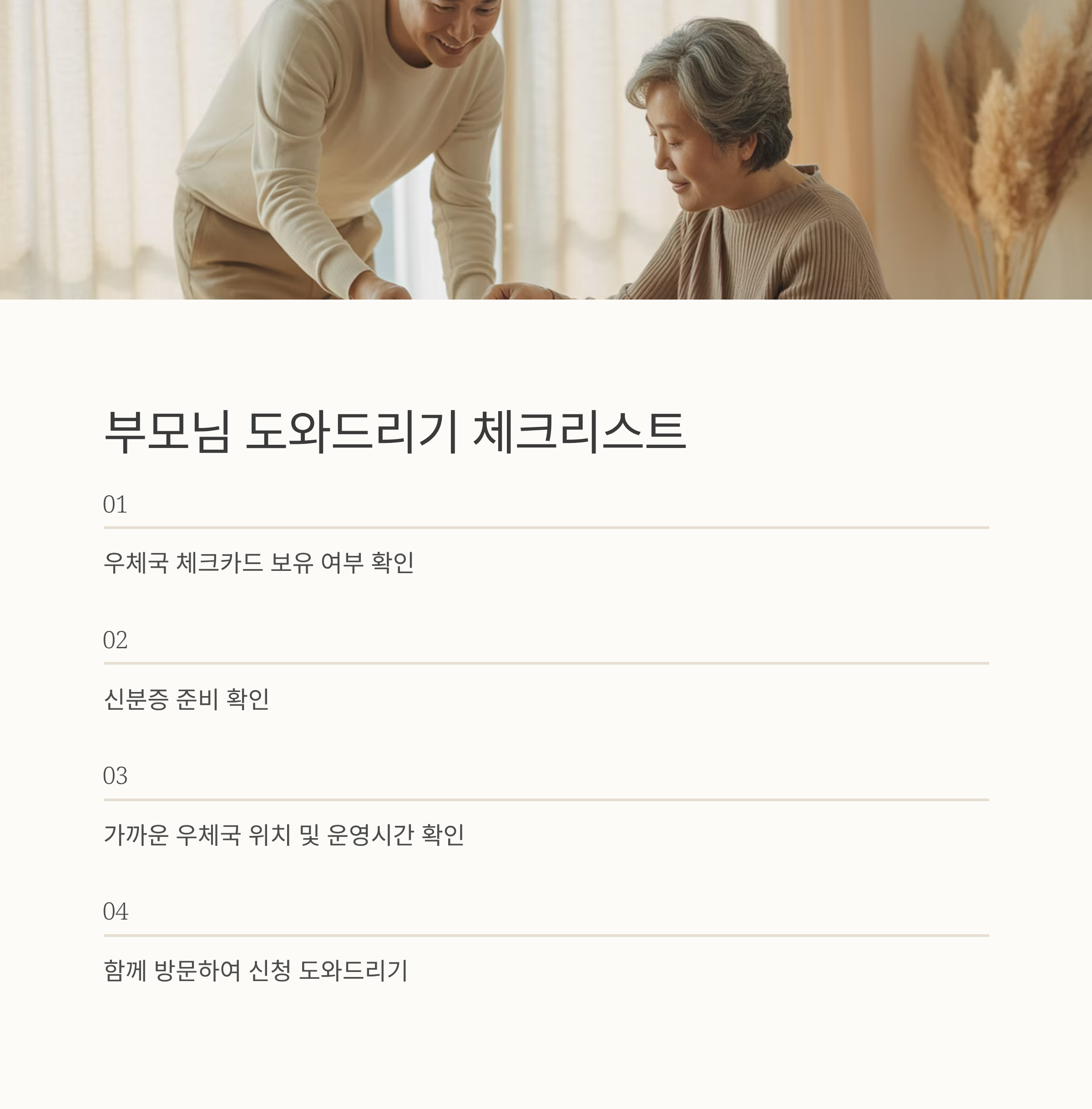 오늘 안내드린 내용을 활용해 우체국 방문을 함께 도와드리는 것은 어떨까요.