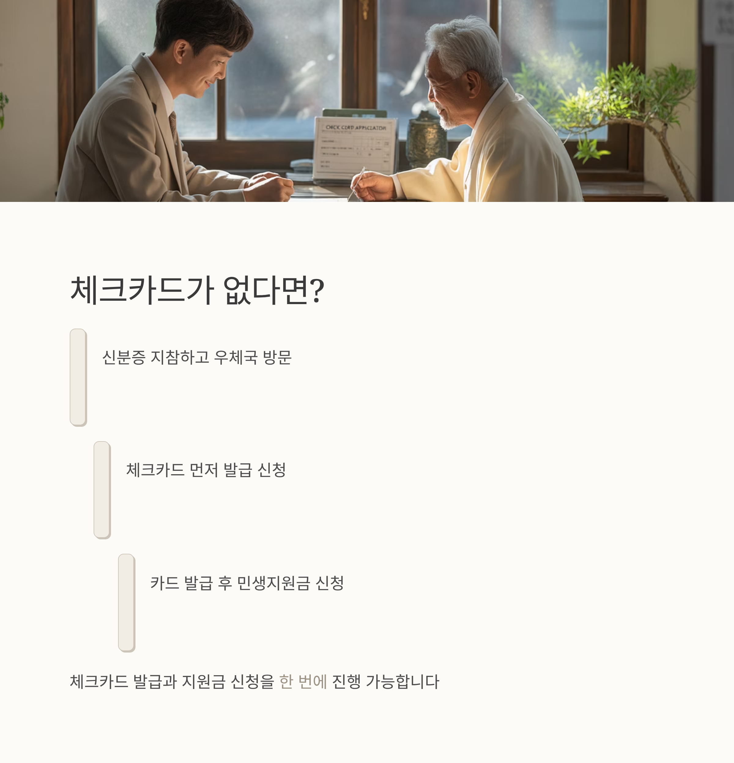 지원금을 신청하려면 반드시 본인 명의의 우체국 체크카드가 있어야 합니다.