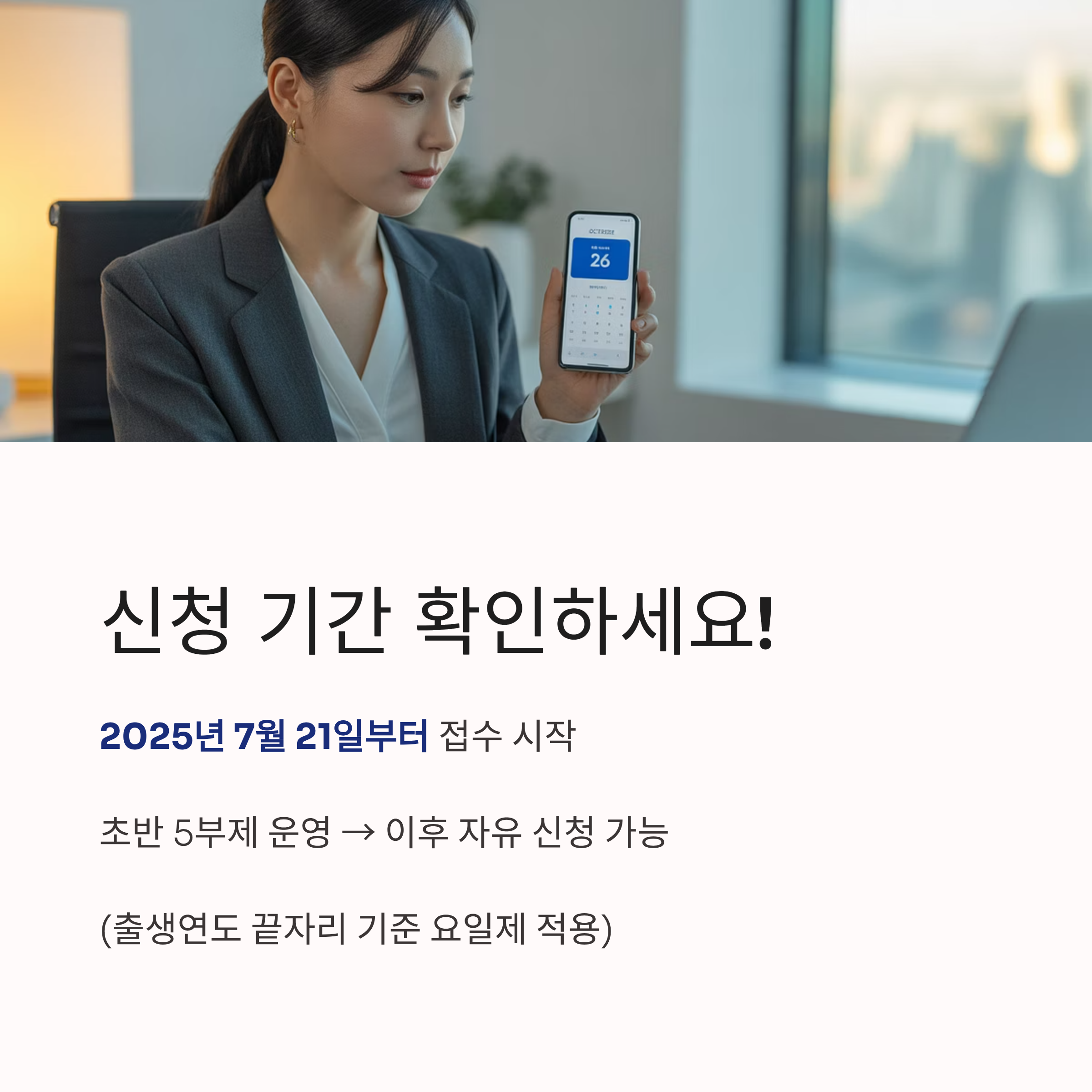 A2. 2025년 7월 21일부터 시작했으며, 초기에는 5부제, 이후 자유 신청이 가능합니다.