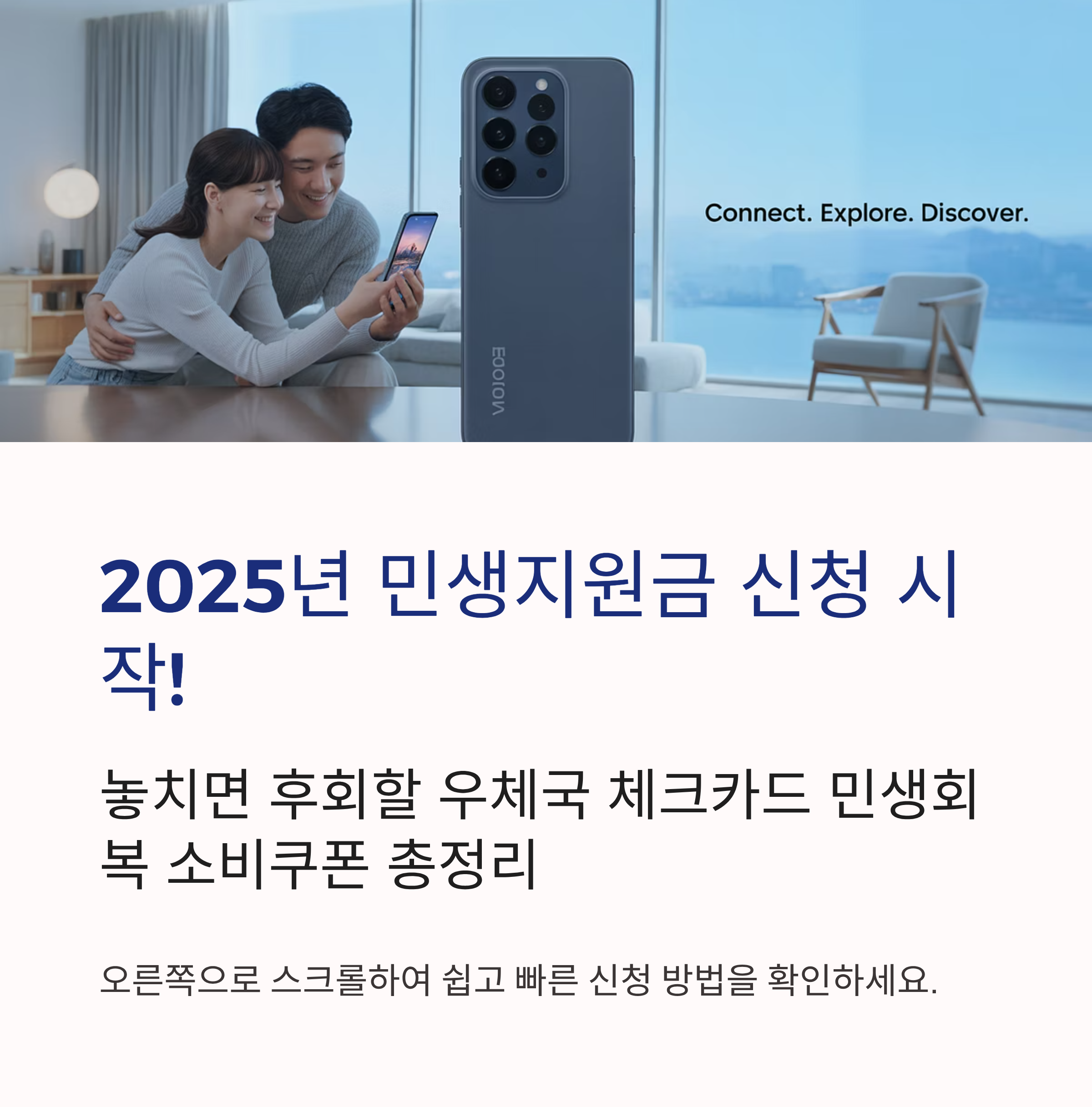 2025년 정부가 추진하는 민생회복 소비쿠폰(민생지원금)이 본격적으로 접수 중입니다. 경기 침체와 물가 상승으로 어려움을 겪는 국민의 생활 안정을 돕기 위해 마련되었으며, 우체국 체크카드와 BC카드(페이북 앱)를 통해 간편하게 신청할 수 있습니다.