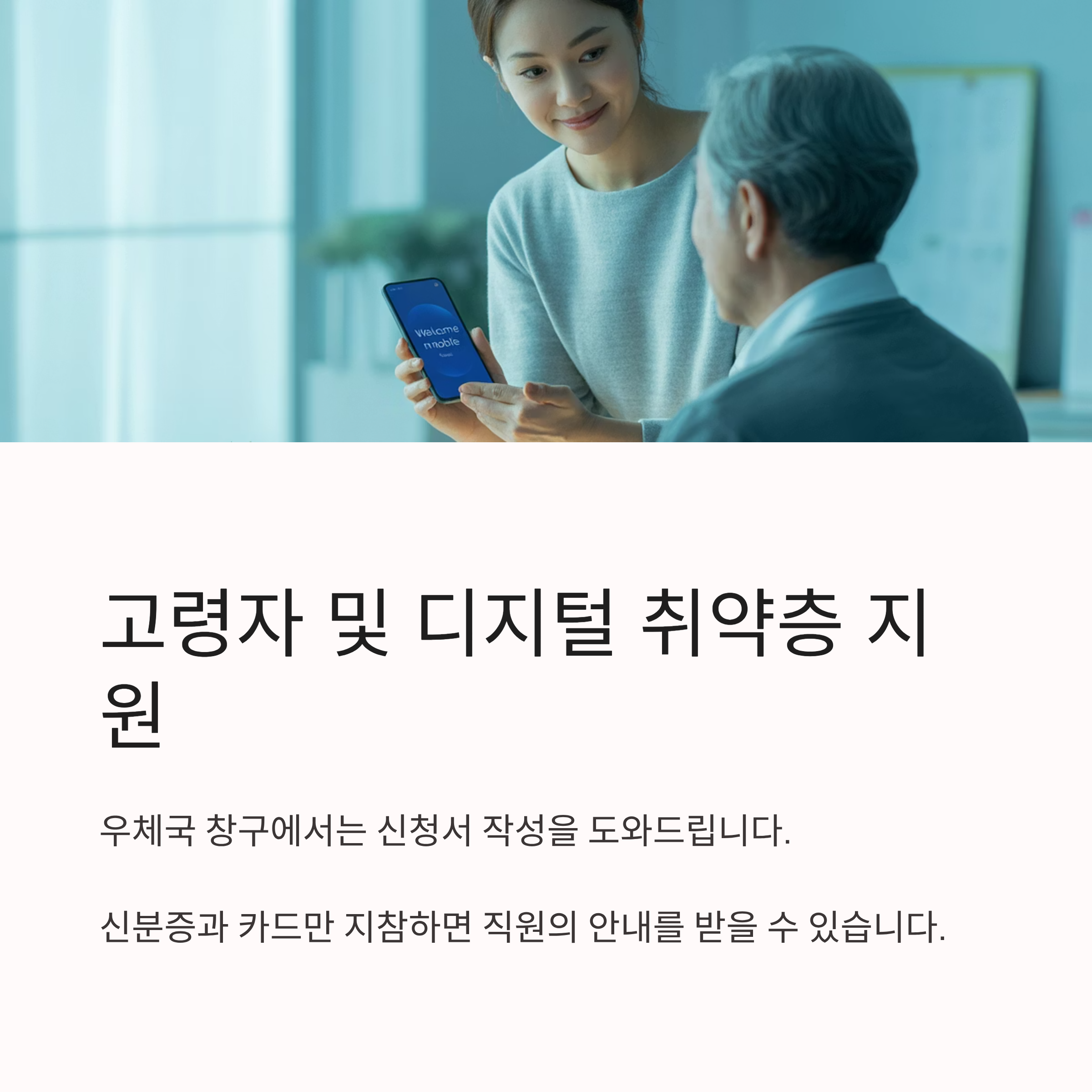 - 고령자·디지털 취약층은 우체국 창구 방문 권장