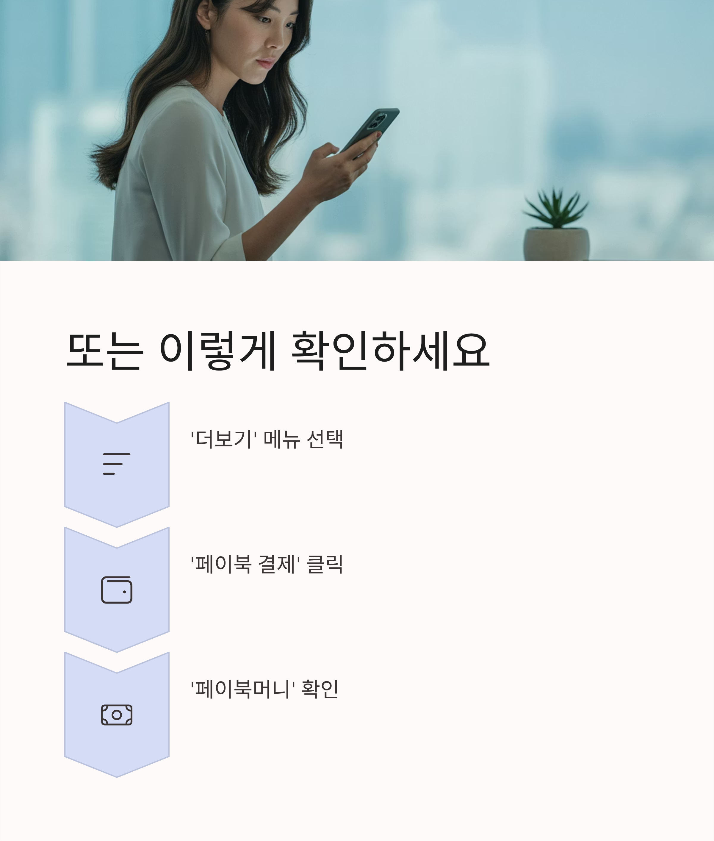 ✔ 메인화면 상단 → ‘페이북머니’ 바로 확인