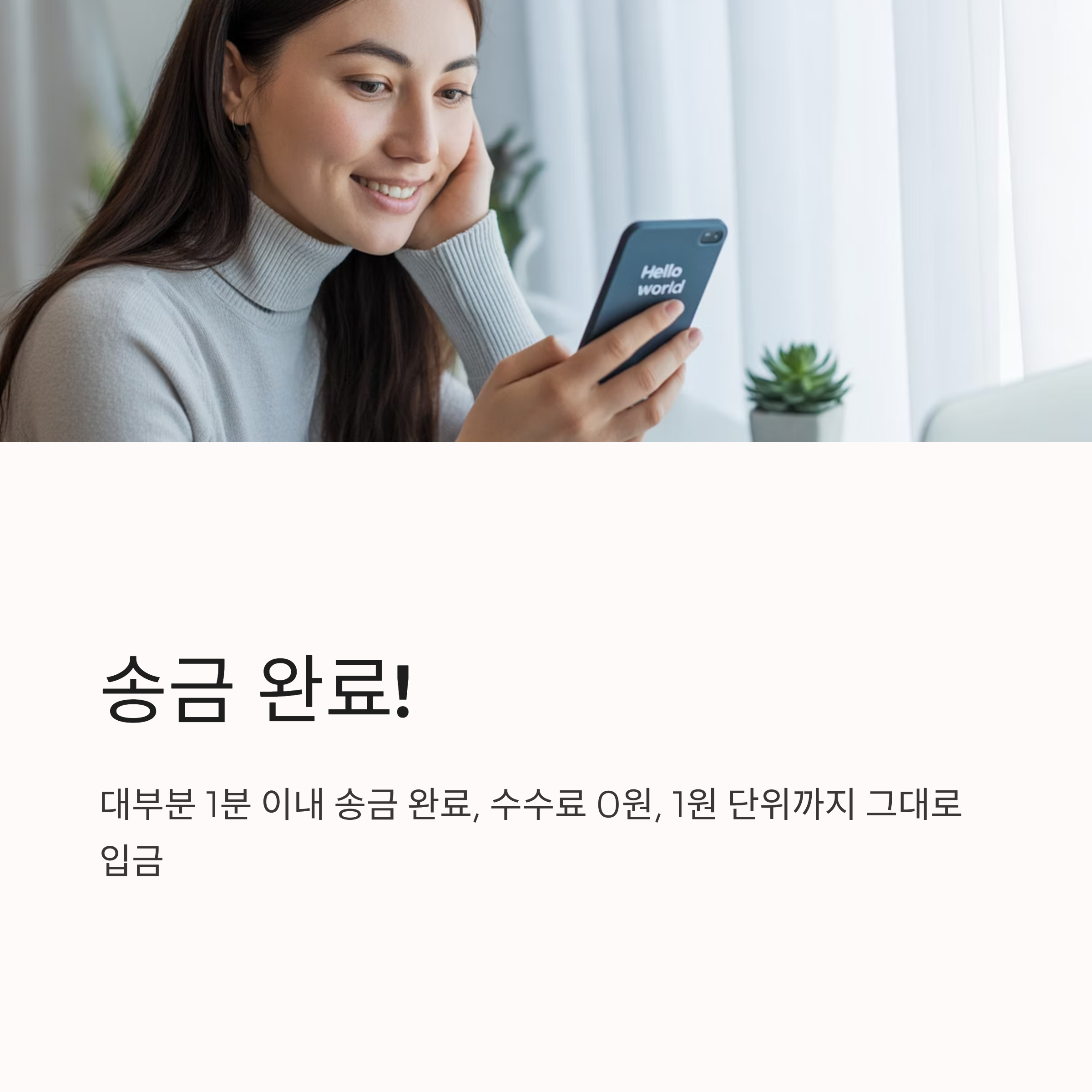 ✅ 대부분 1분 이내 송금 완료, 수수료 0원
