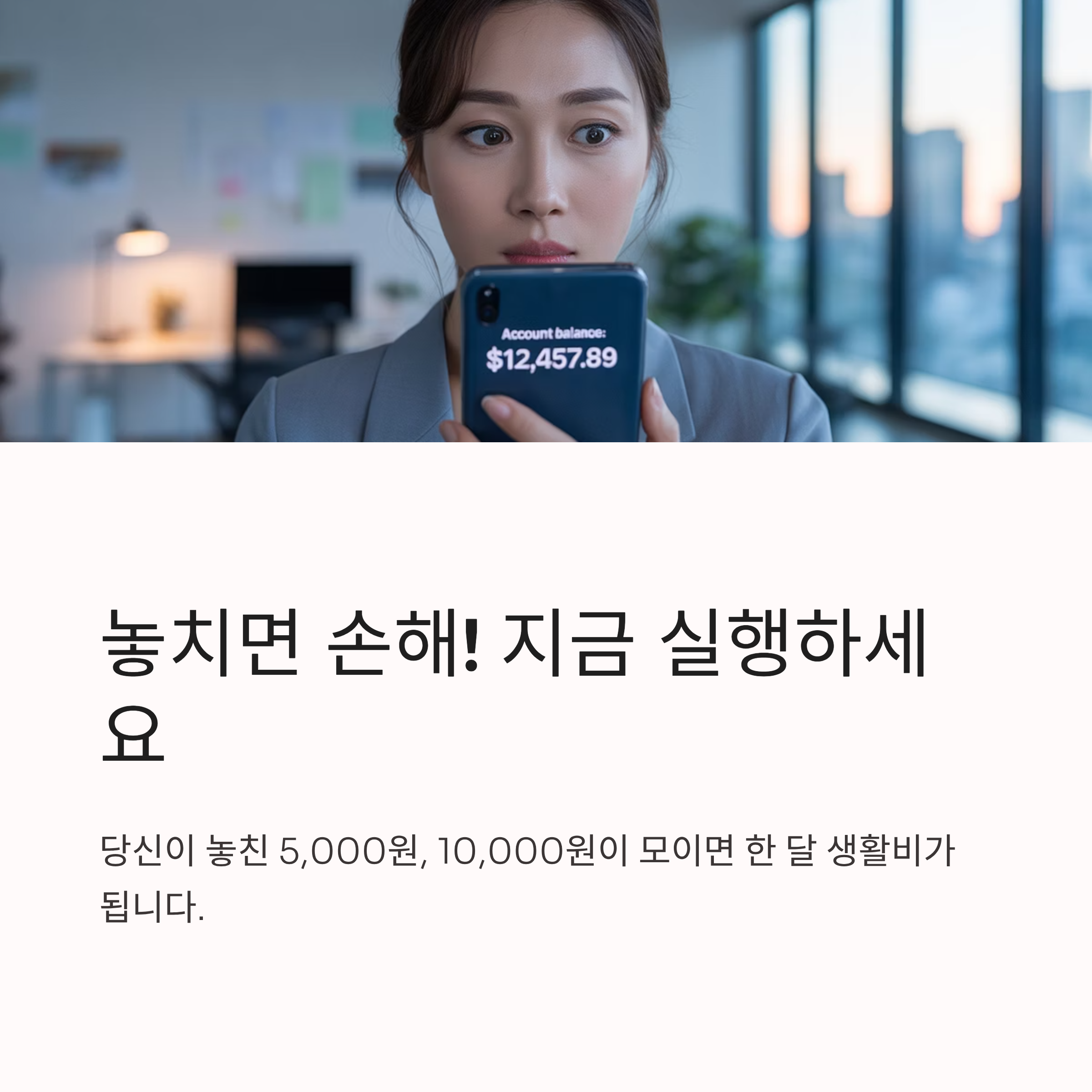 당신이 놓친 5,000원, 10,000원이 모이면 한 달 생활비가 됩니다.