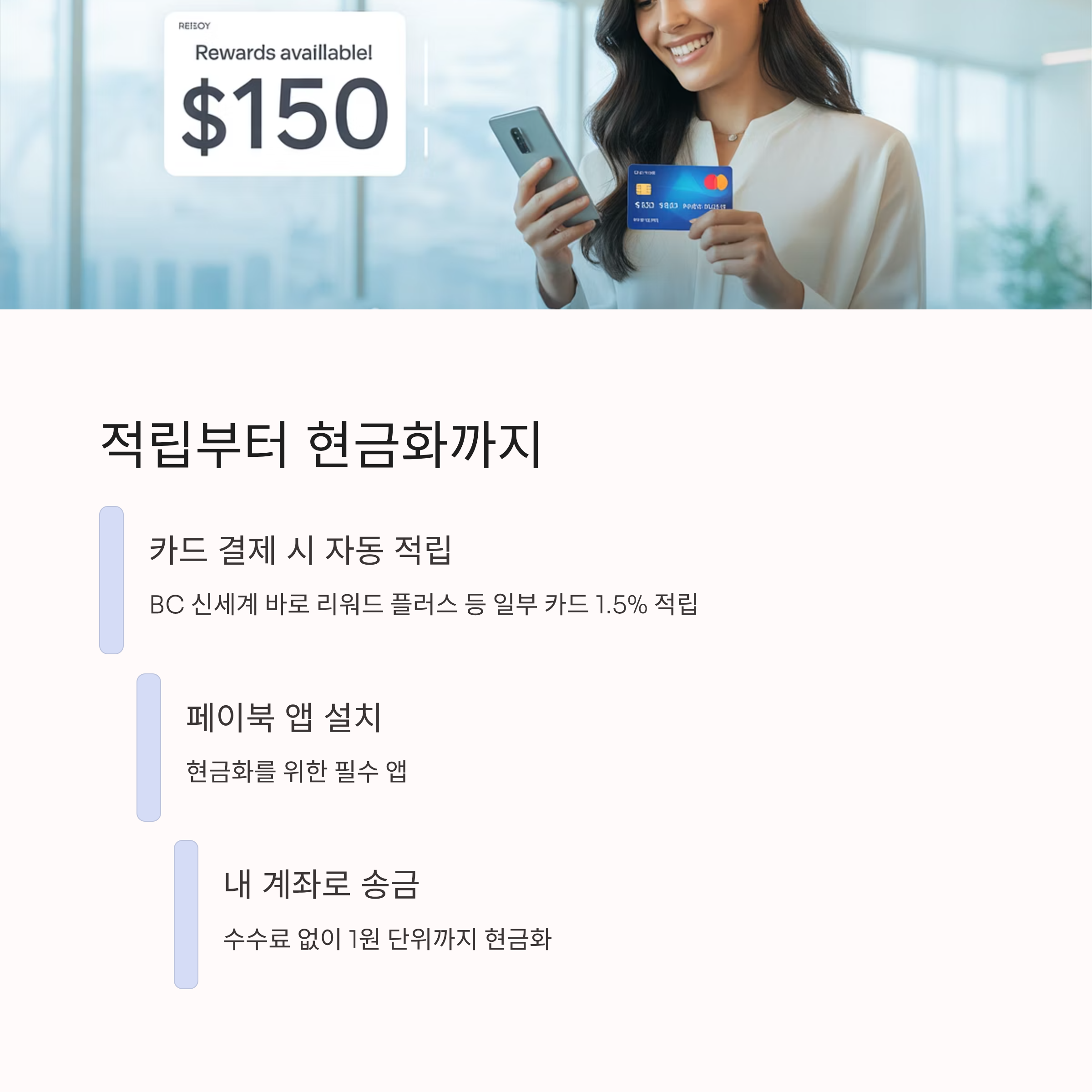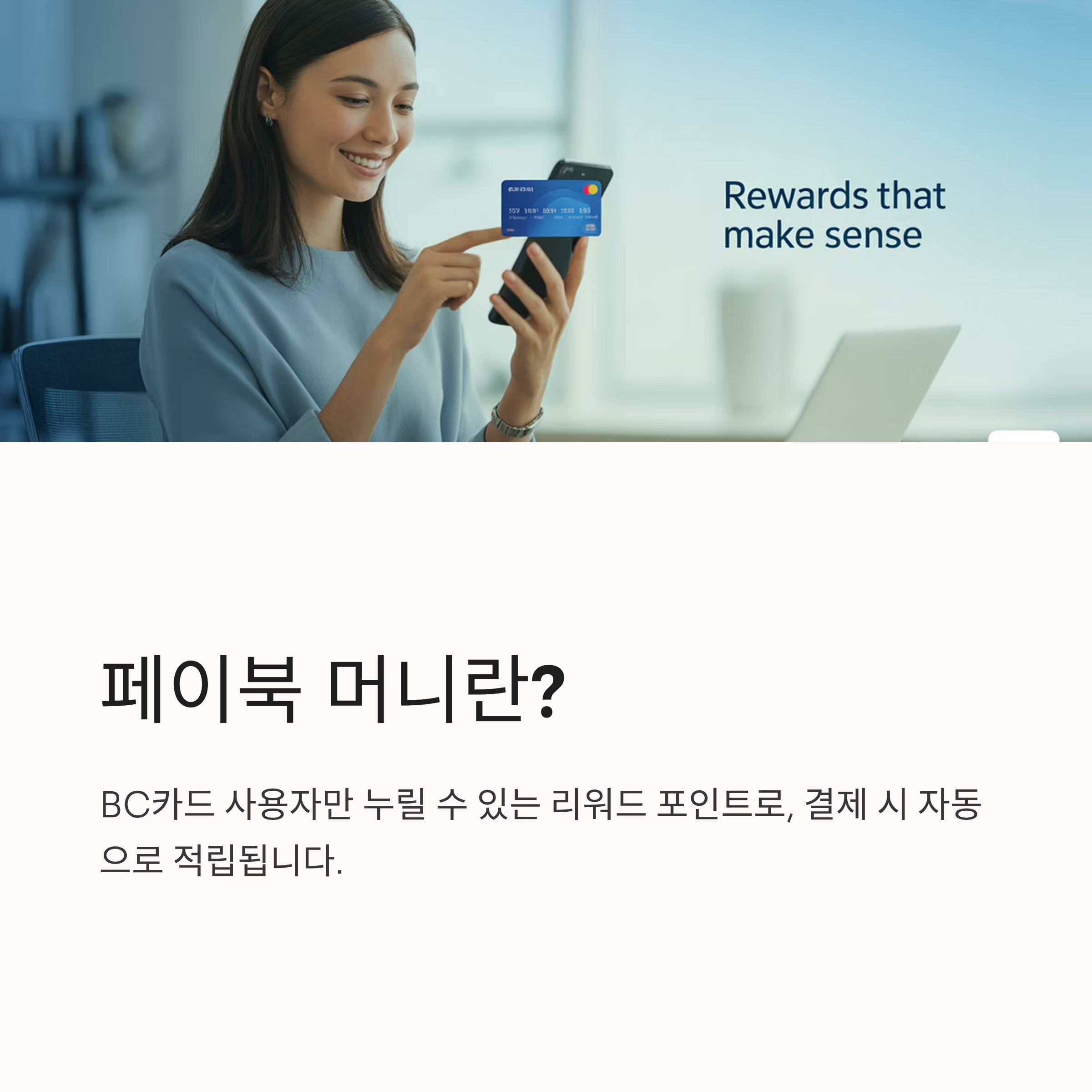 페이북 머니는 BC카드 결제 시 자동으로 적립되는 리워드 포인트입니다.