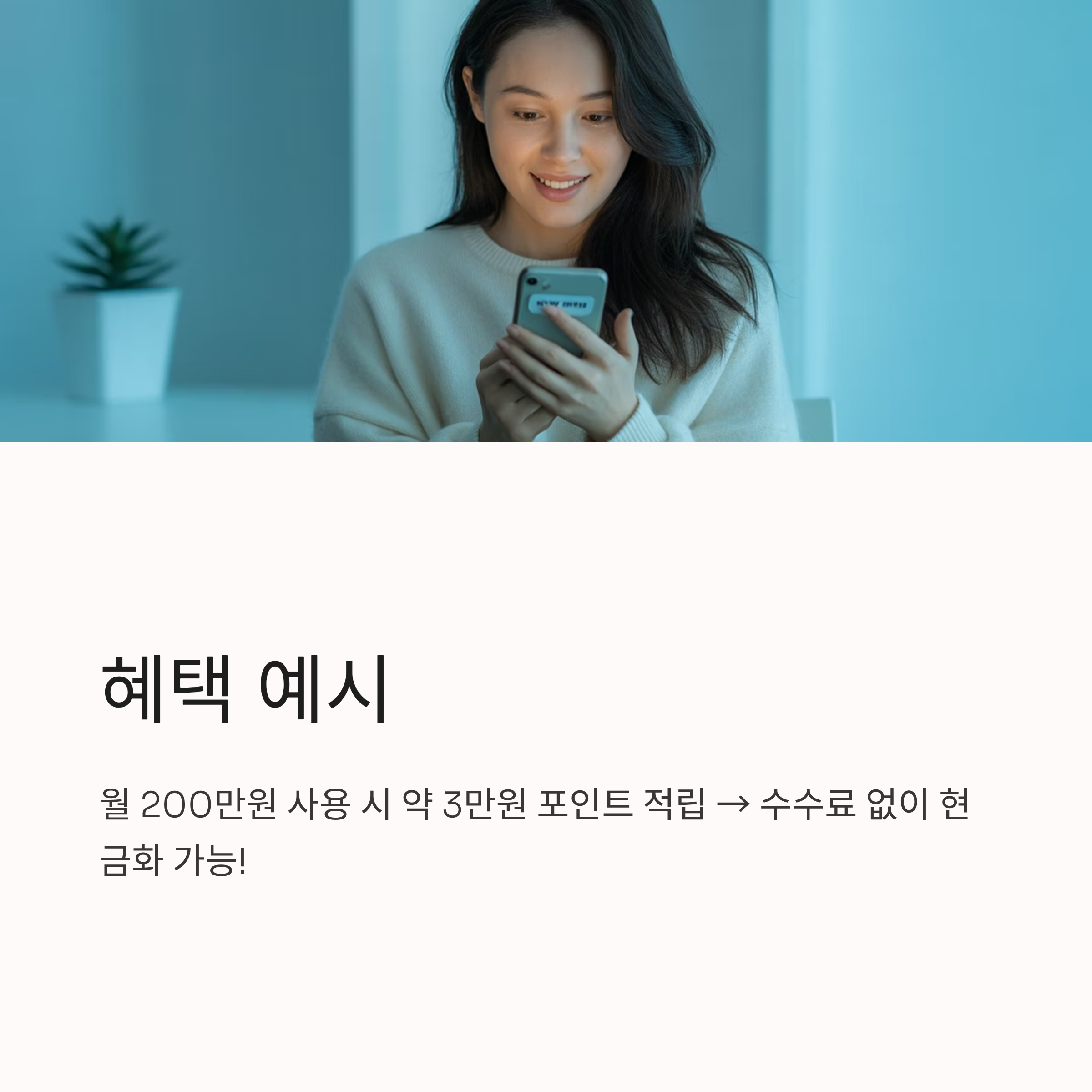 ✅ 예시: 월 200만 원 사용 시 약 3만 원 포인트 적립 → 현금화 가능!